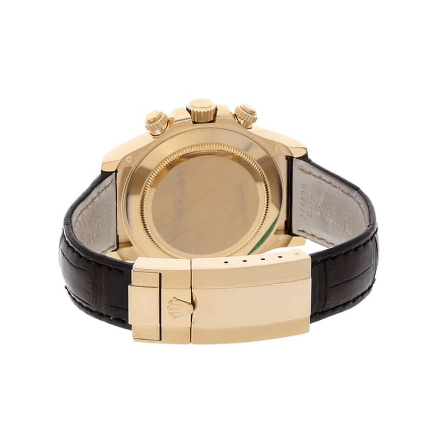 这款劳力士 Daytona Cosmograph 116515LNBR 玫瑰金黑色表盘复刻表是一款令人惊叹的手表。它采用玫瑰金色 904L 不锈钢表壳和黑色表圈。蓝宝石水晶镜面尺寸为 40.00 毫米,厚度为 13.00 毫米。鳄鱼皮表带可调节,配有玫瑰金双折表扣。棕色表盘上有阿拉伯数字和 904L 不锈钢时标和指针。