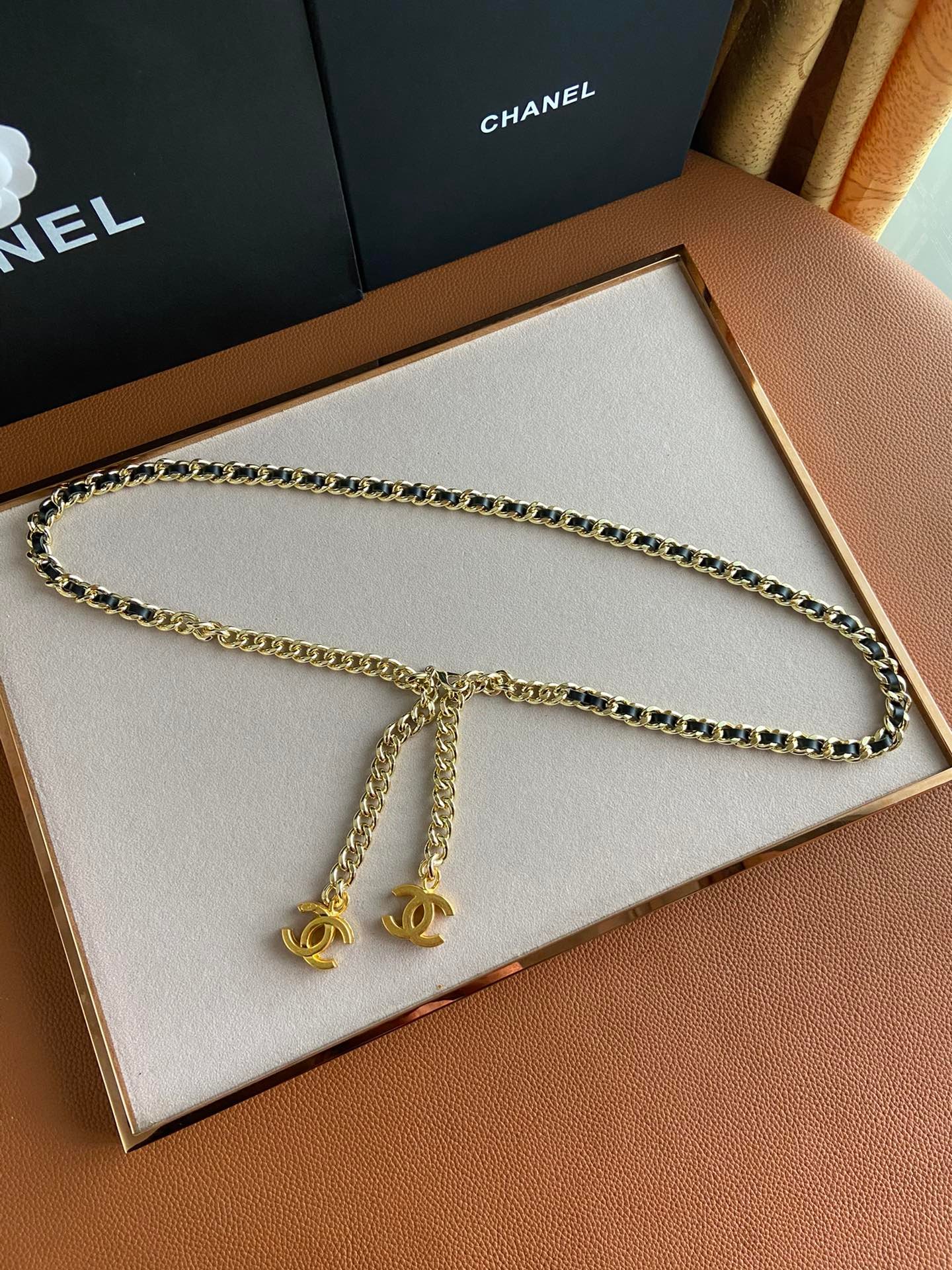 香奈儿黑色边框项链