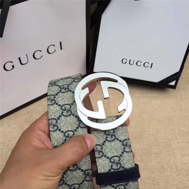 古驰 Gucci 原单面料 头层树膏磨砂底 双G扣头 银色