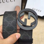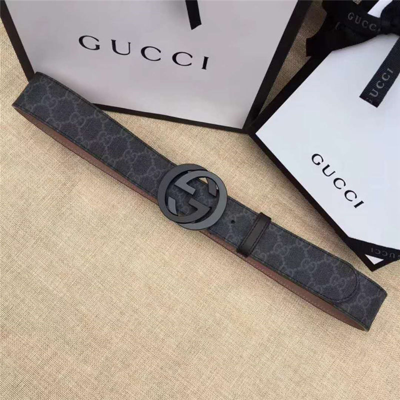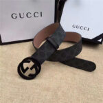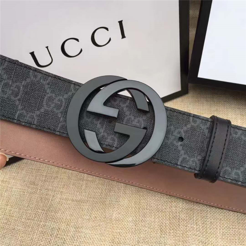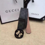 古驰 Gucci 原单面料 头层树膏磨砂底 双G扣头 黑色