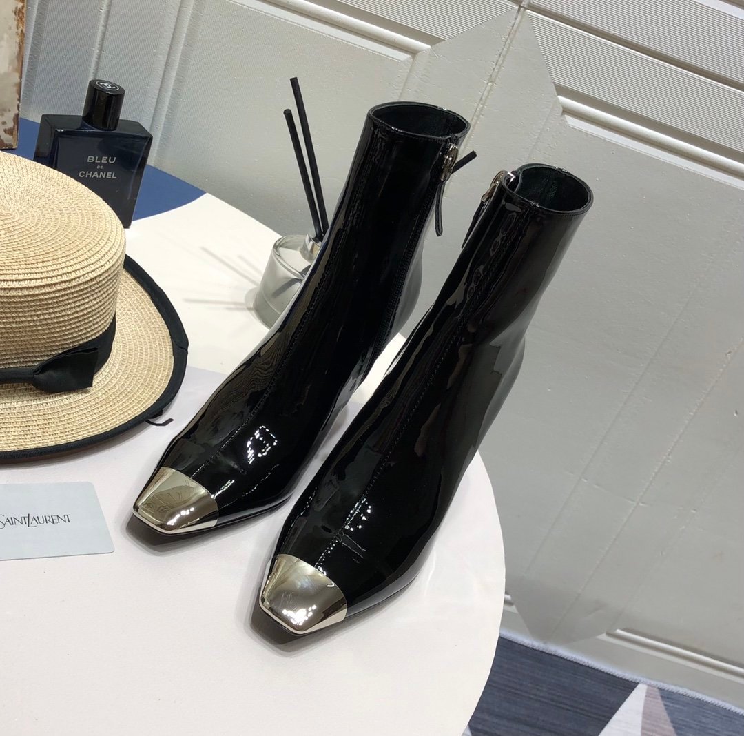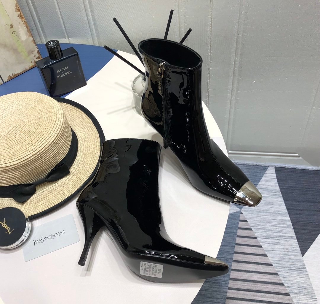 采用专利鞋面、合成衬里、鞋底。单品采用修长方头设计,配有闪亮的银色五金配件。