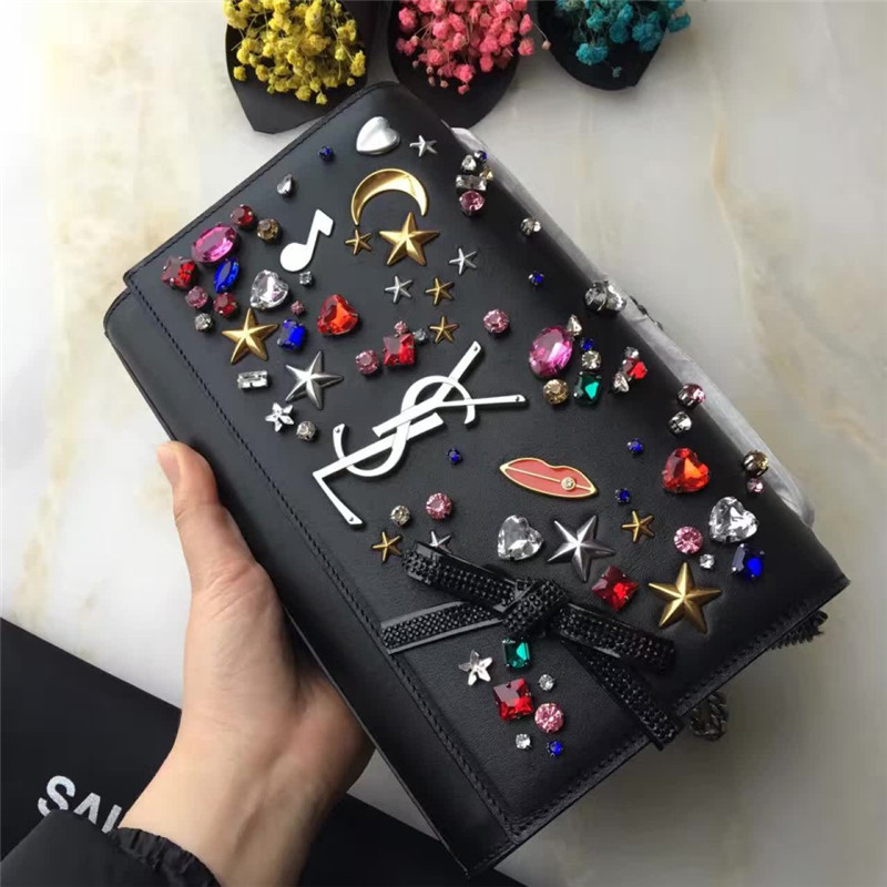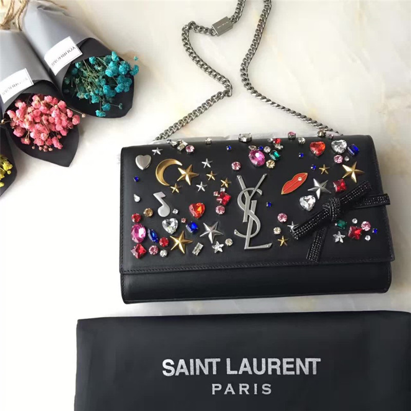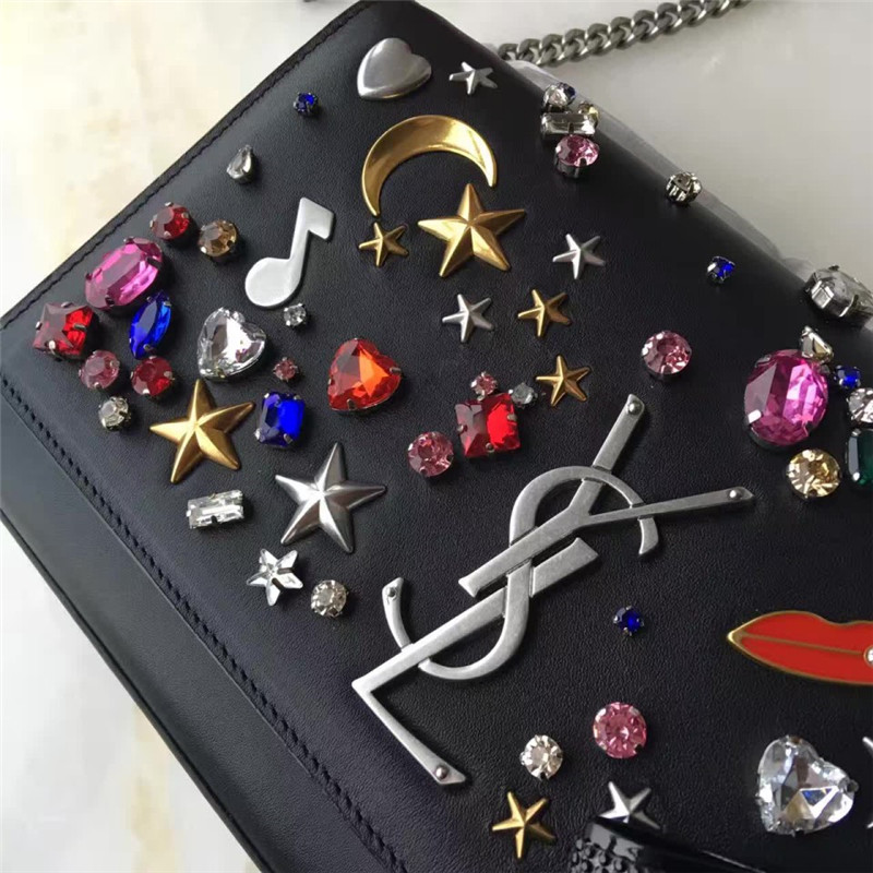 - 圣罗兰Monogram 星星月亮YSL logo单肩包 SLP官网新款 彩色镶钻蝴蝶结链条包