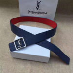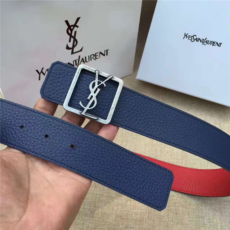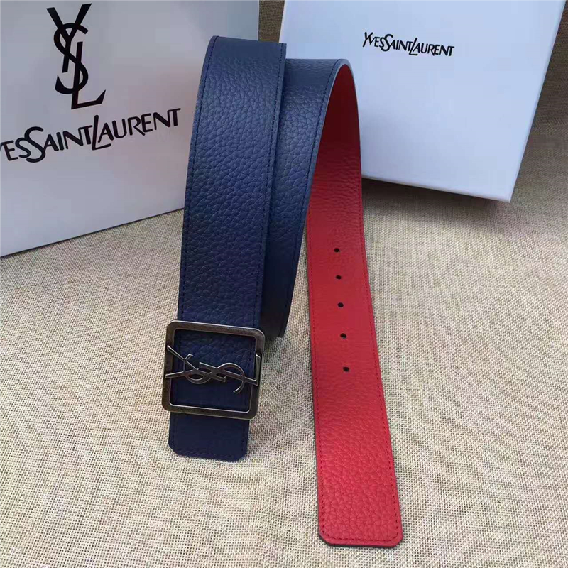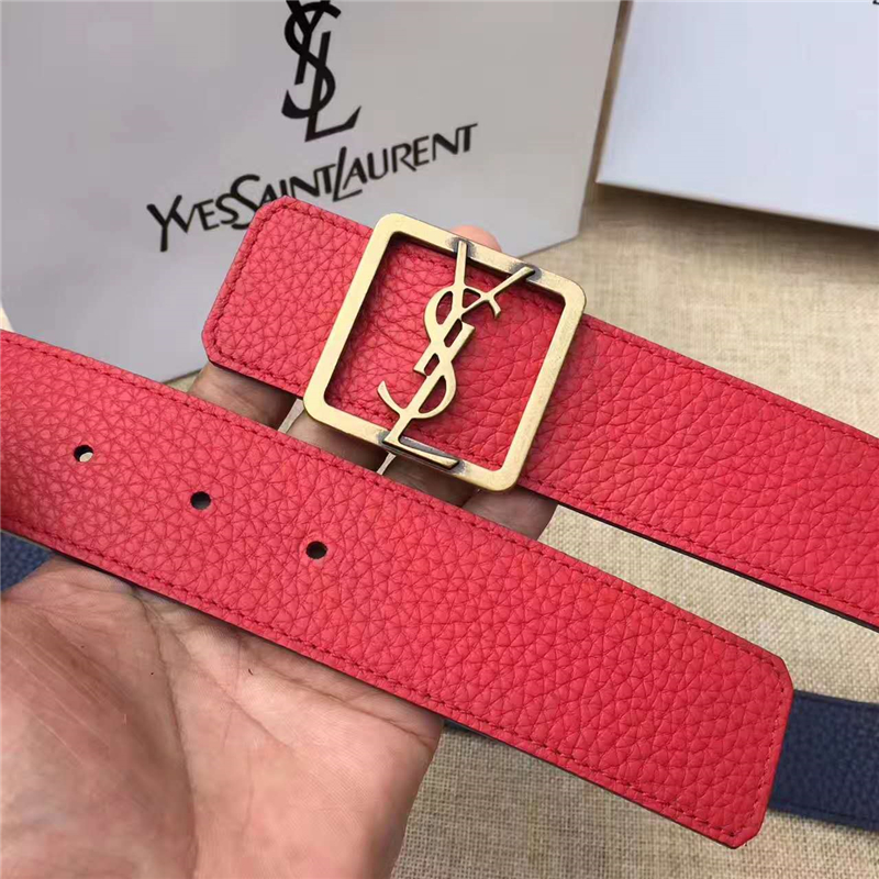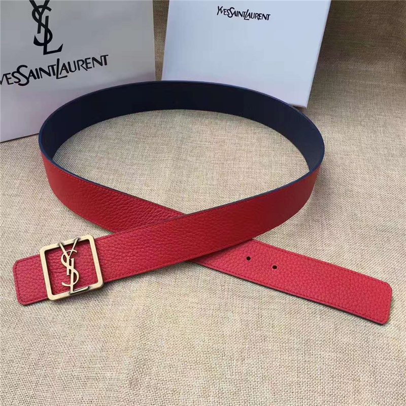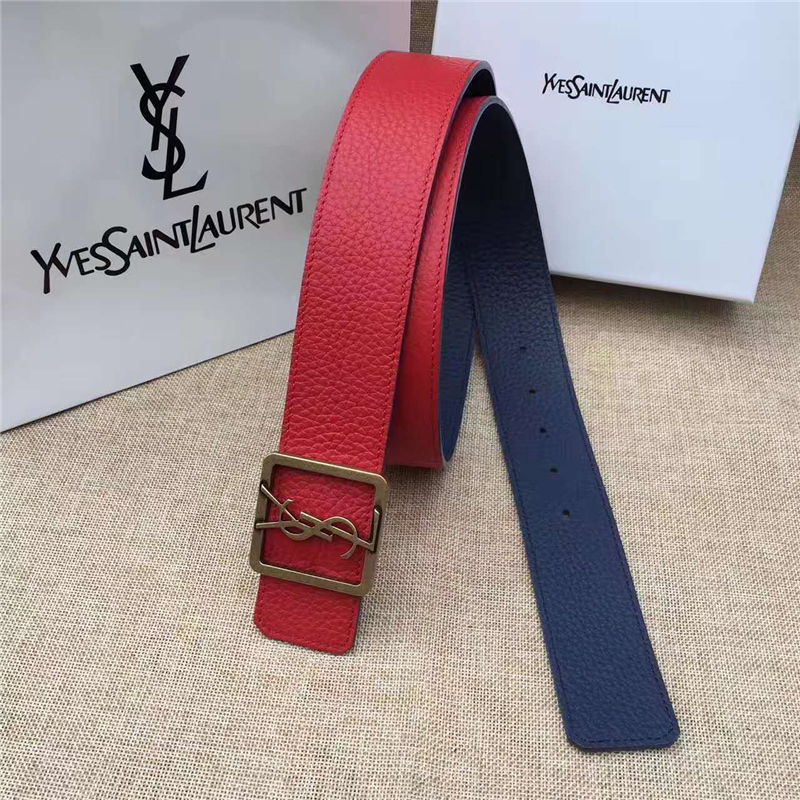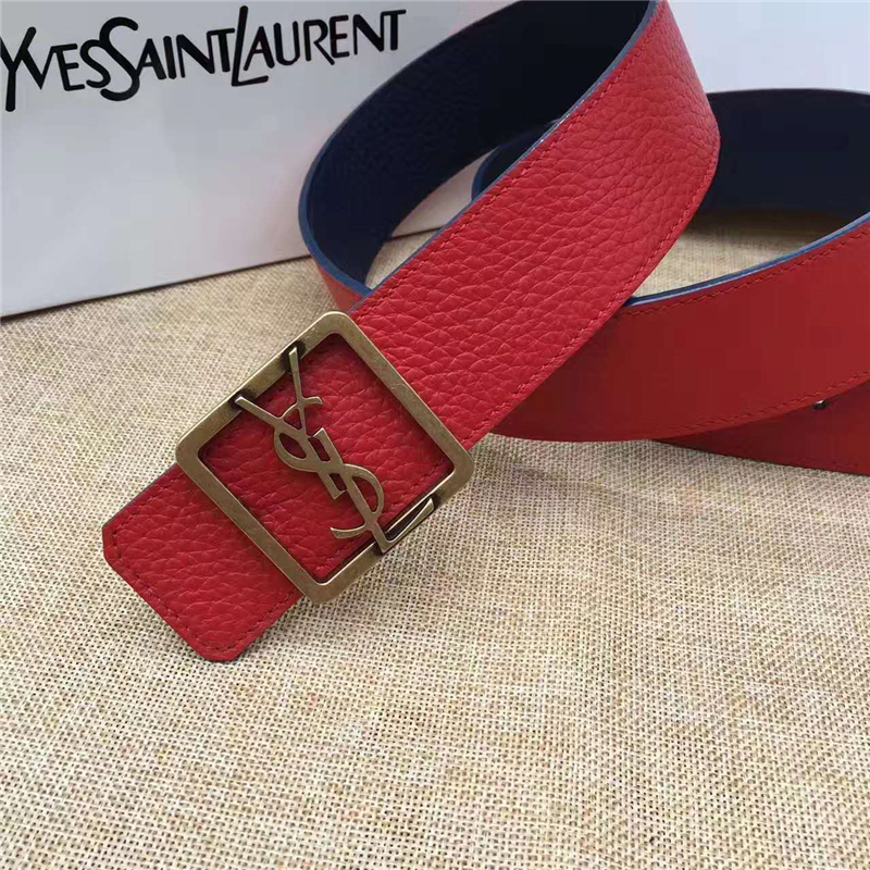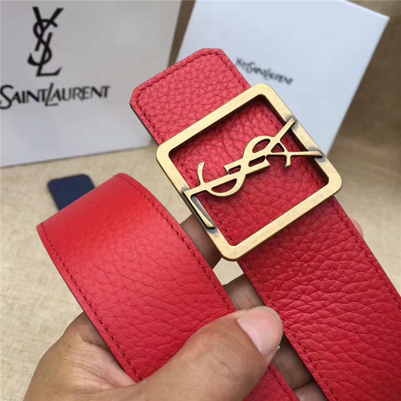 - 圣罗兰YSL女士腰带 头层牛皮荔枝纹 实心复古铜扣头 双面可用 红色
