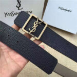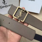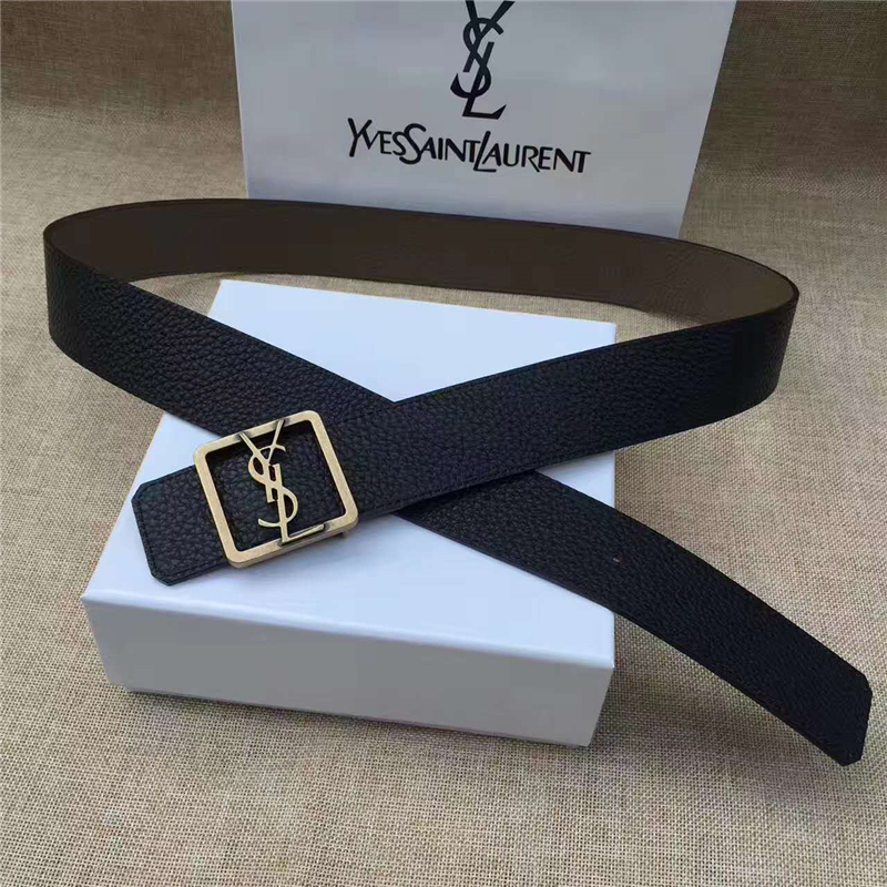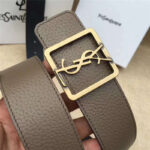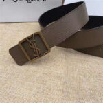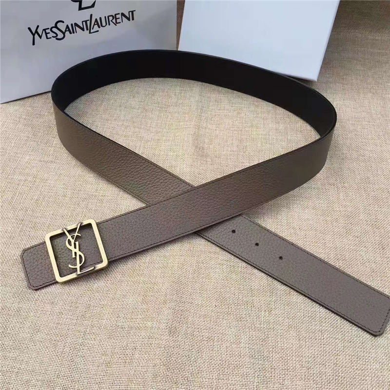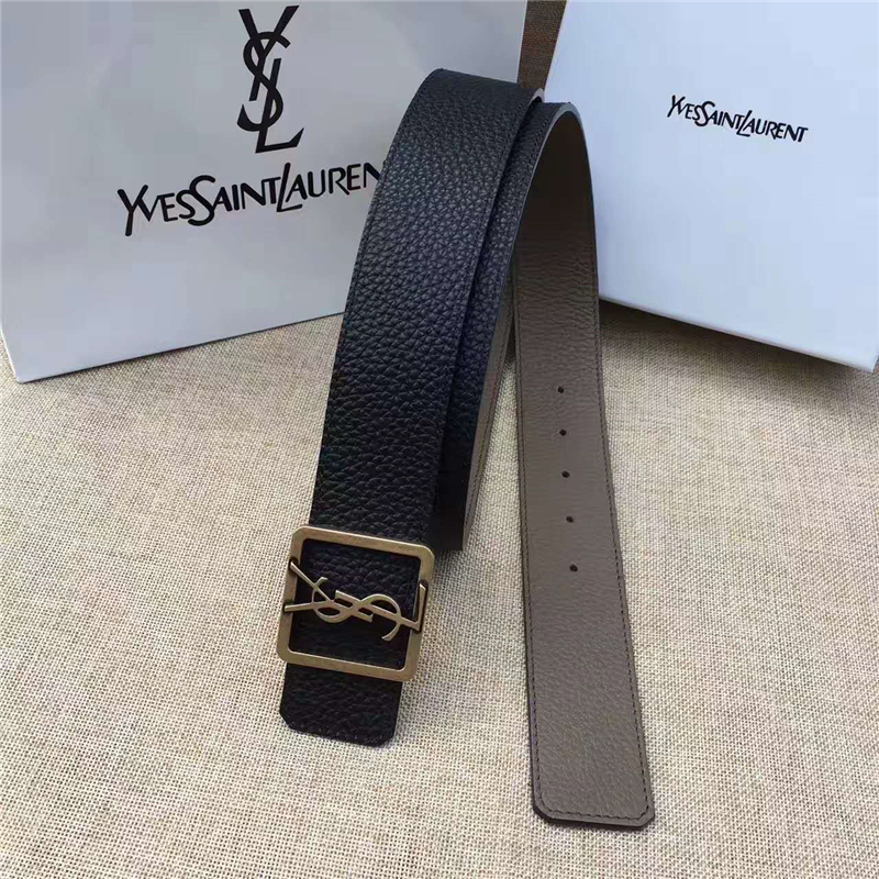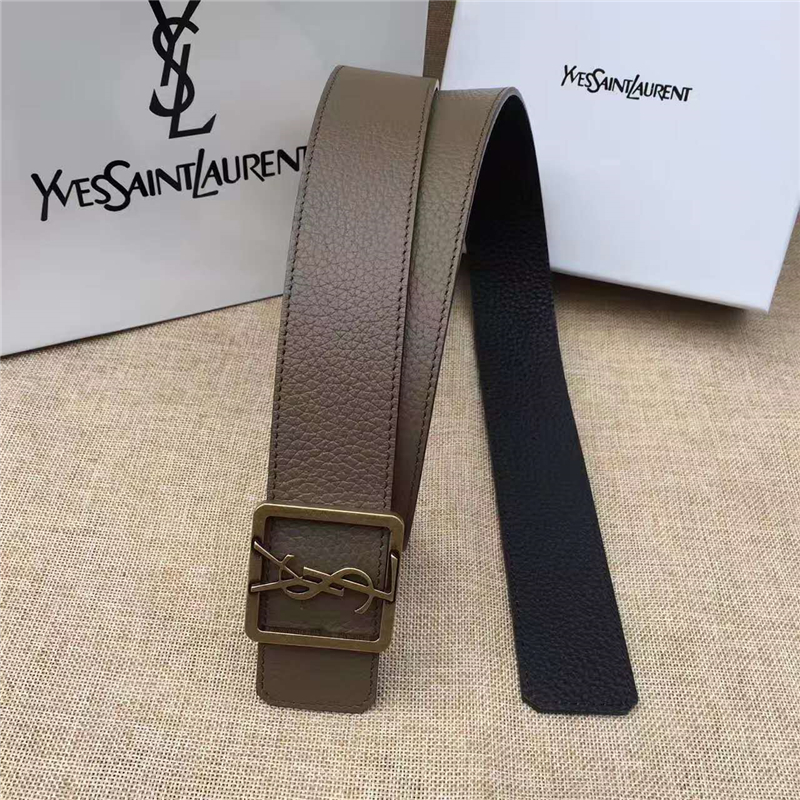 - 圣罗兰YSL女士腰带 头层牛皮荔枝纹 实心复古铜扣头 双面可用 棕色