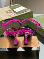 独特的形状因意想不到的细节而变得栩栩如生,例如这款独特的鞋底,由一条遵循脚部轮廓的曲线和脚踝闭合细节定义。这双凉拖采用镶有水晶的丝缎制成,搭配带有金属嵌片的几何鞋跟,使整体风格更加完美。