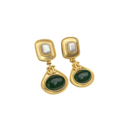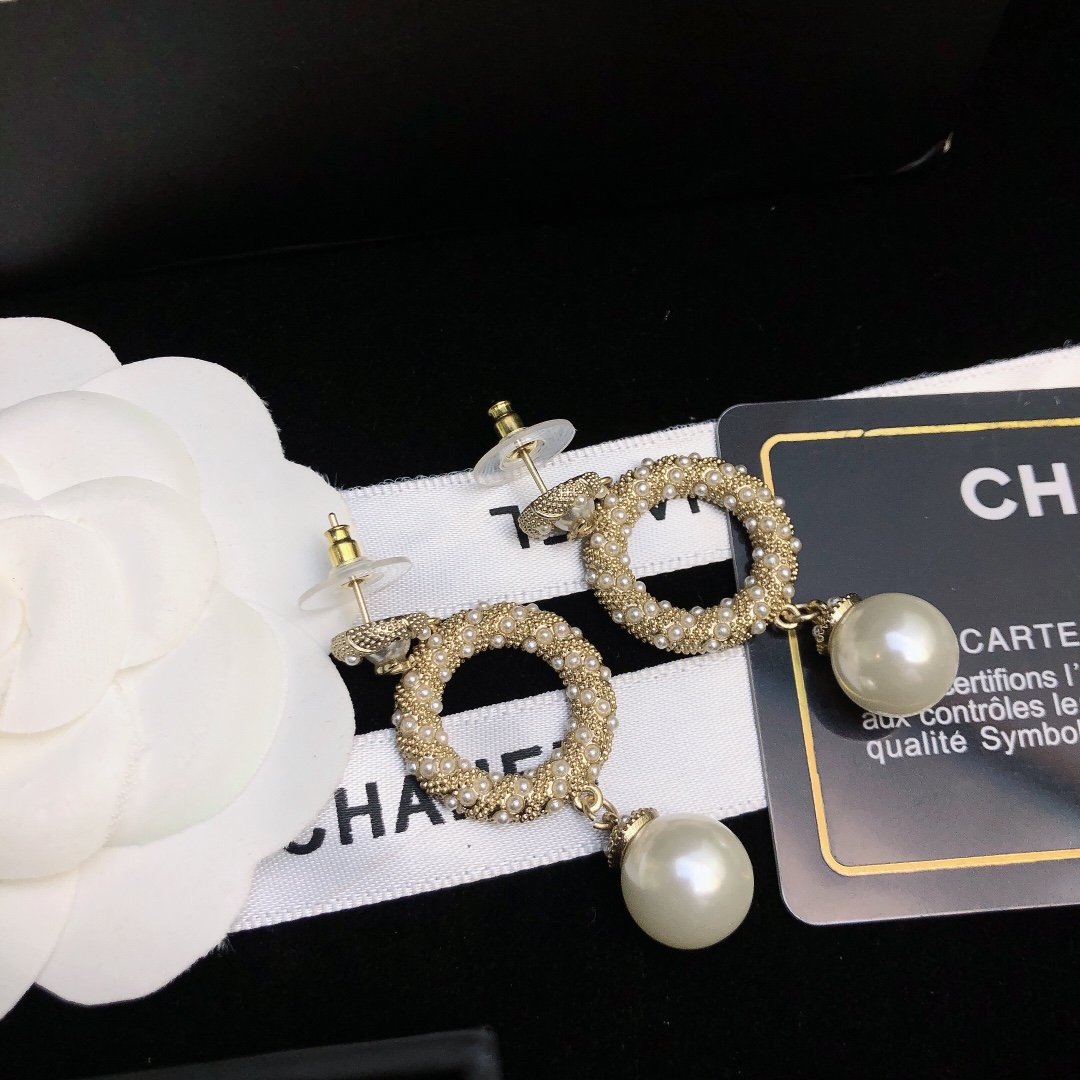 Chanel 悬垂白色珍珠和圆形耳环金色