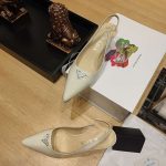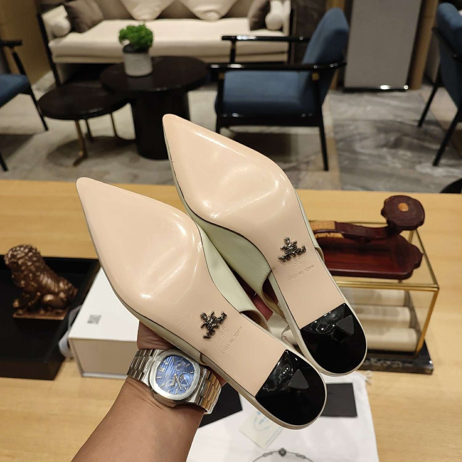 Prada 标志性的花朵形状为这些带子高跟鞋增添了诱人的美感。传统上用于高端经典鞋履,自 90 年代以来,拉绒在 Prada 系列中以现代设计进行了重新诠释,创造出反映品牌两侧的合成效果