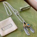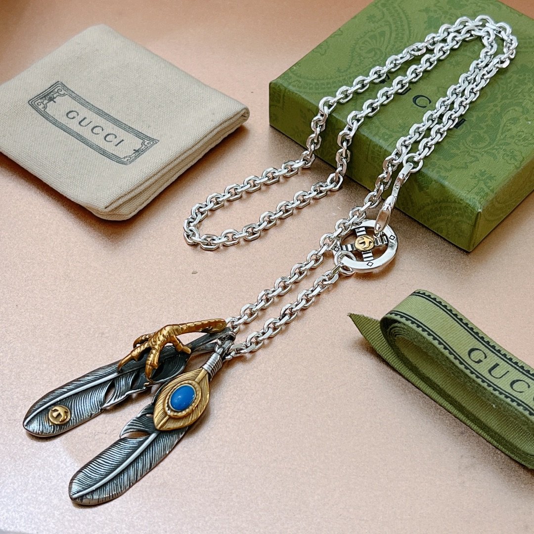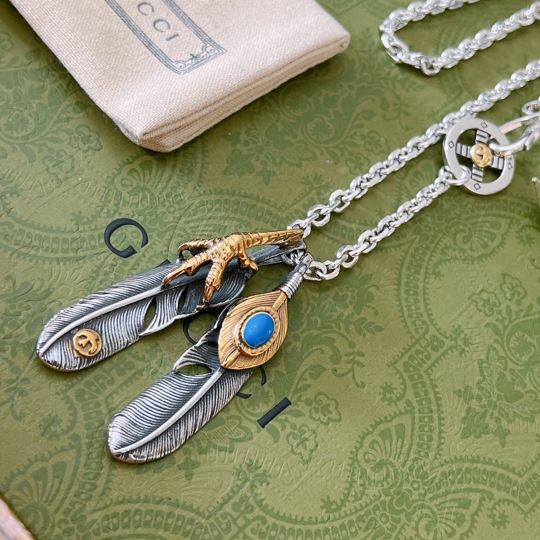 Gucci GG 羽毛项链银色调