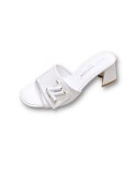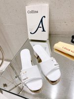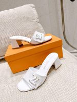 Shake mule 的醒目设计以金属色凸显。该款式的特点是 V 形粗跟和宽前带,饰有镶嵌水晶的 LV 配饰,灵感源自 Twist 包袋的搭扣。它配有外底,鞋垫上有超大的 Louis Vuitton 标志。