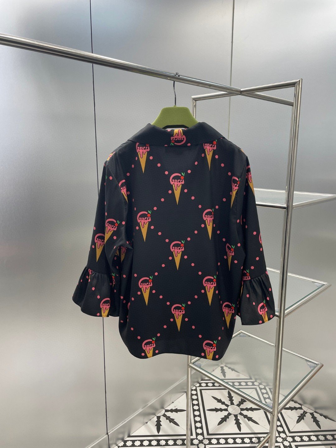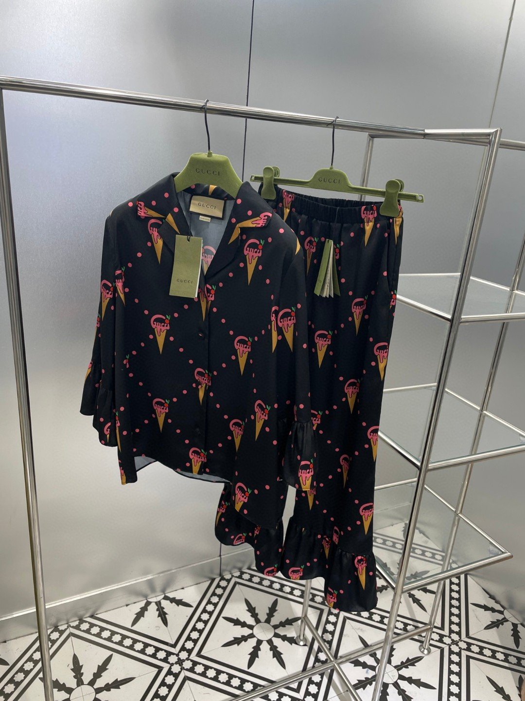 Gucci 冰淇淋印花衬衫和裤子睡衣黑色