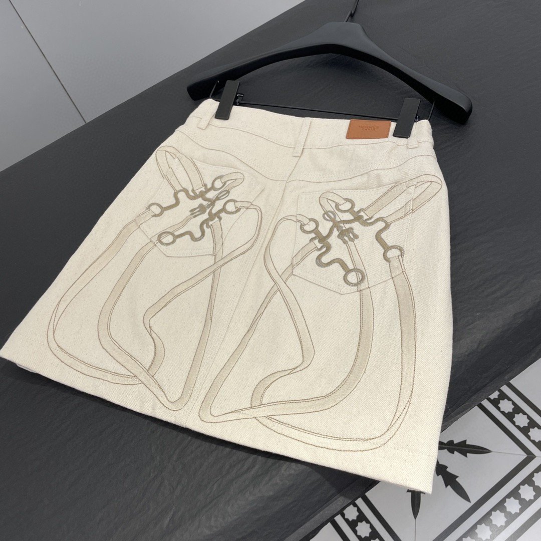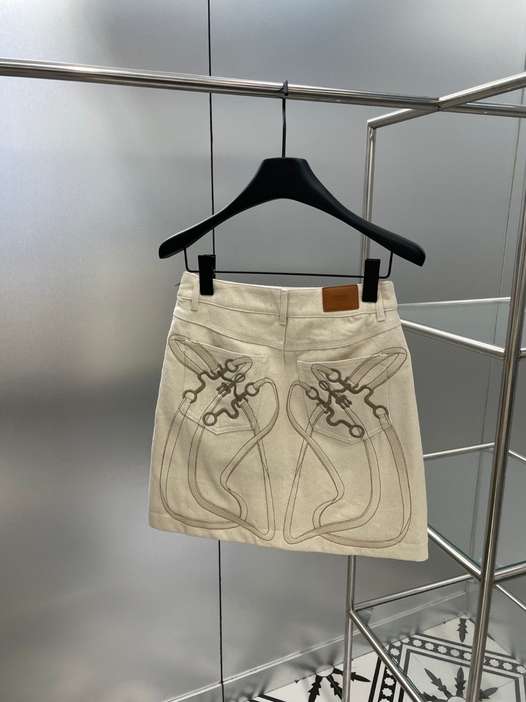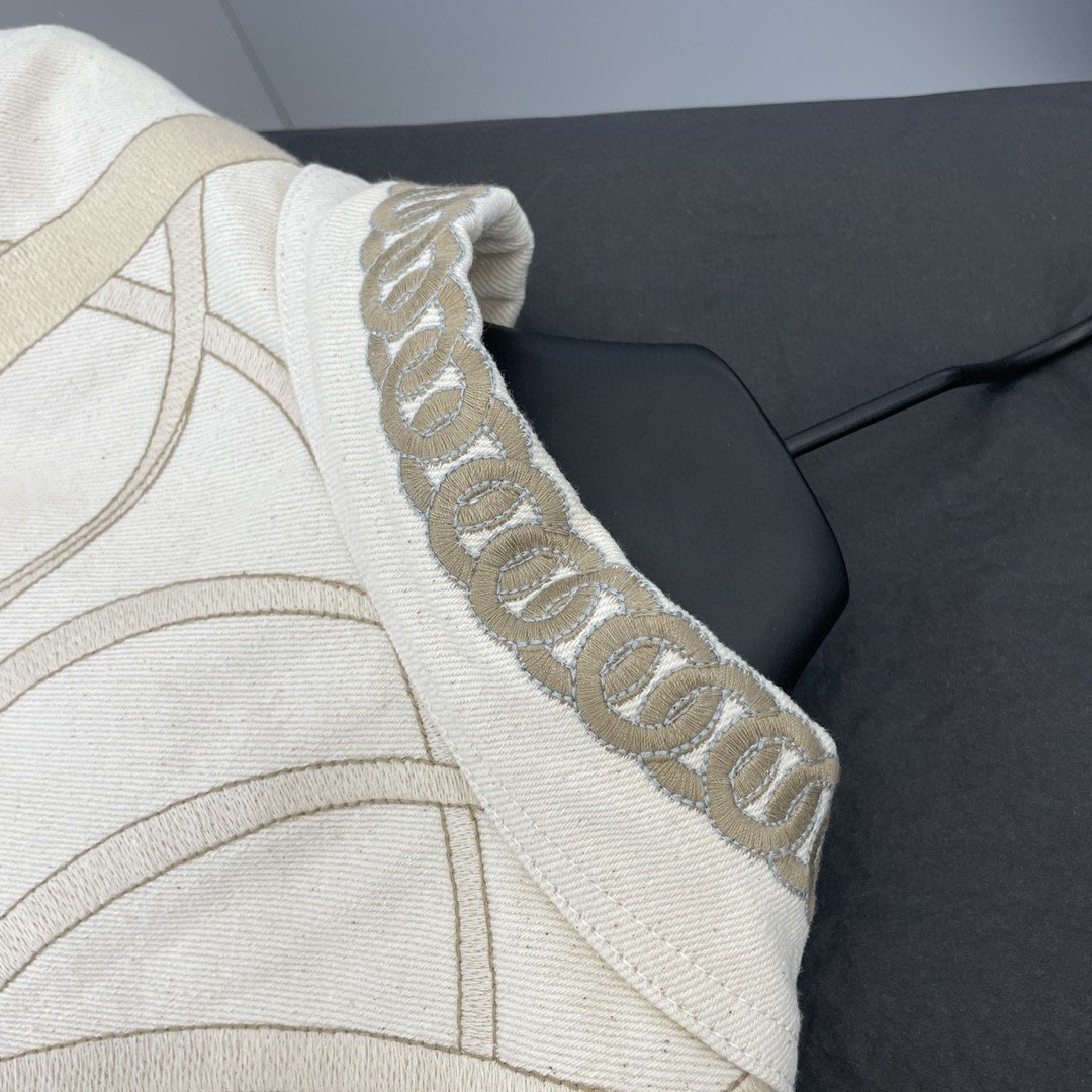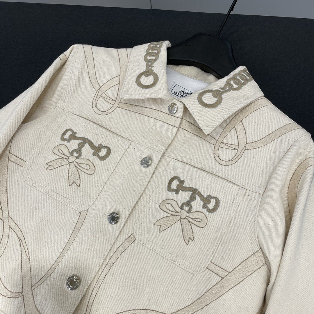 爱马仕刺绣牛仔夹克和裙子米色 C H2H0252DT9134