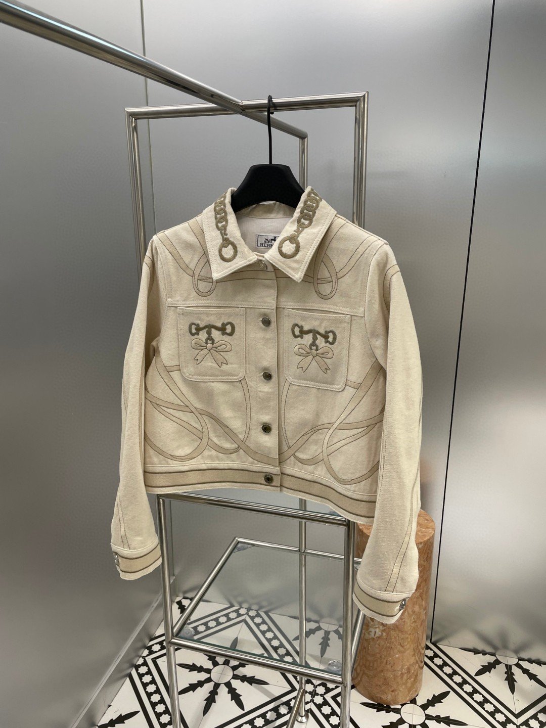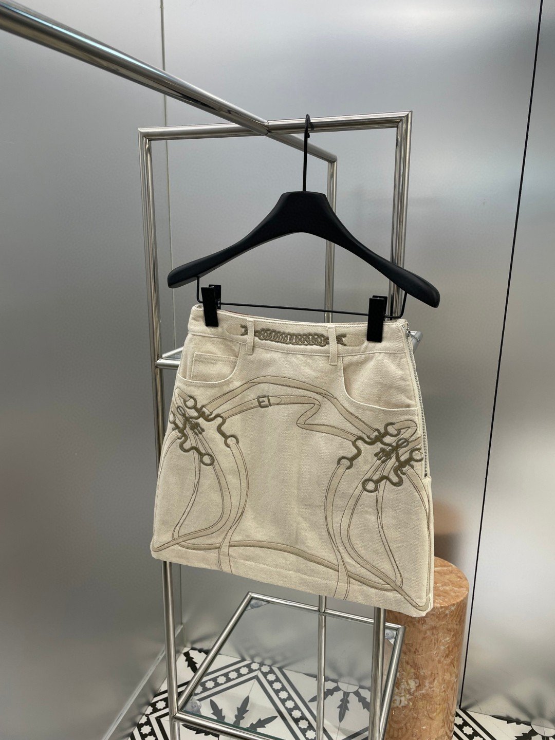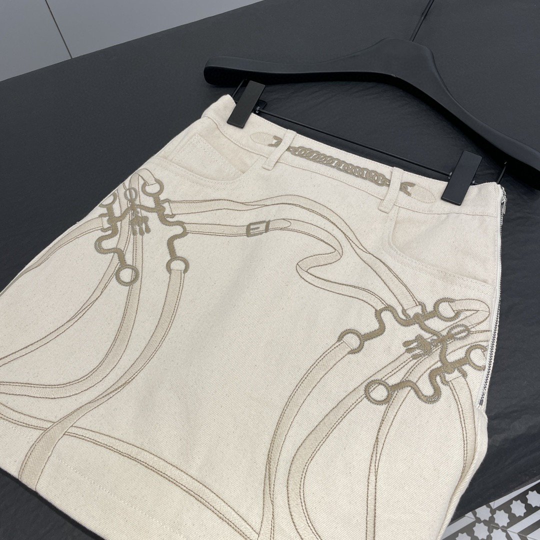 爱马仕刺绣牛仔夹克和裙子米色 C H2H0252DT9134