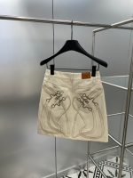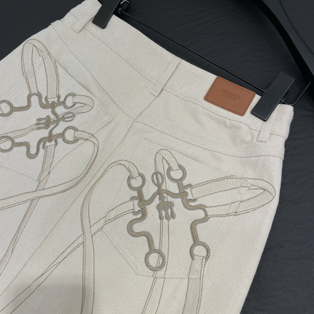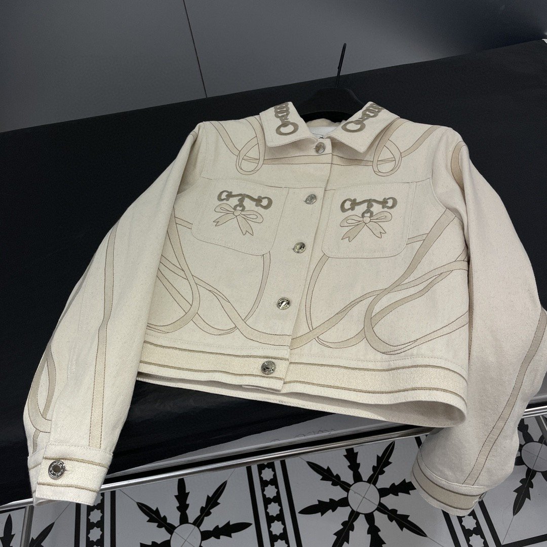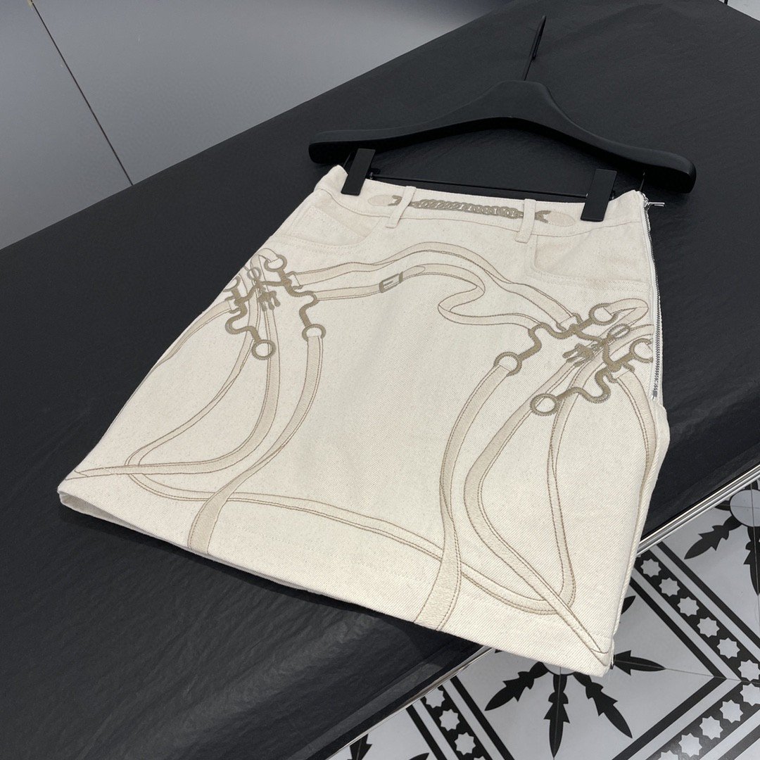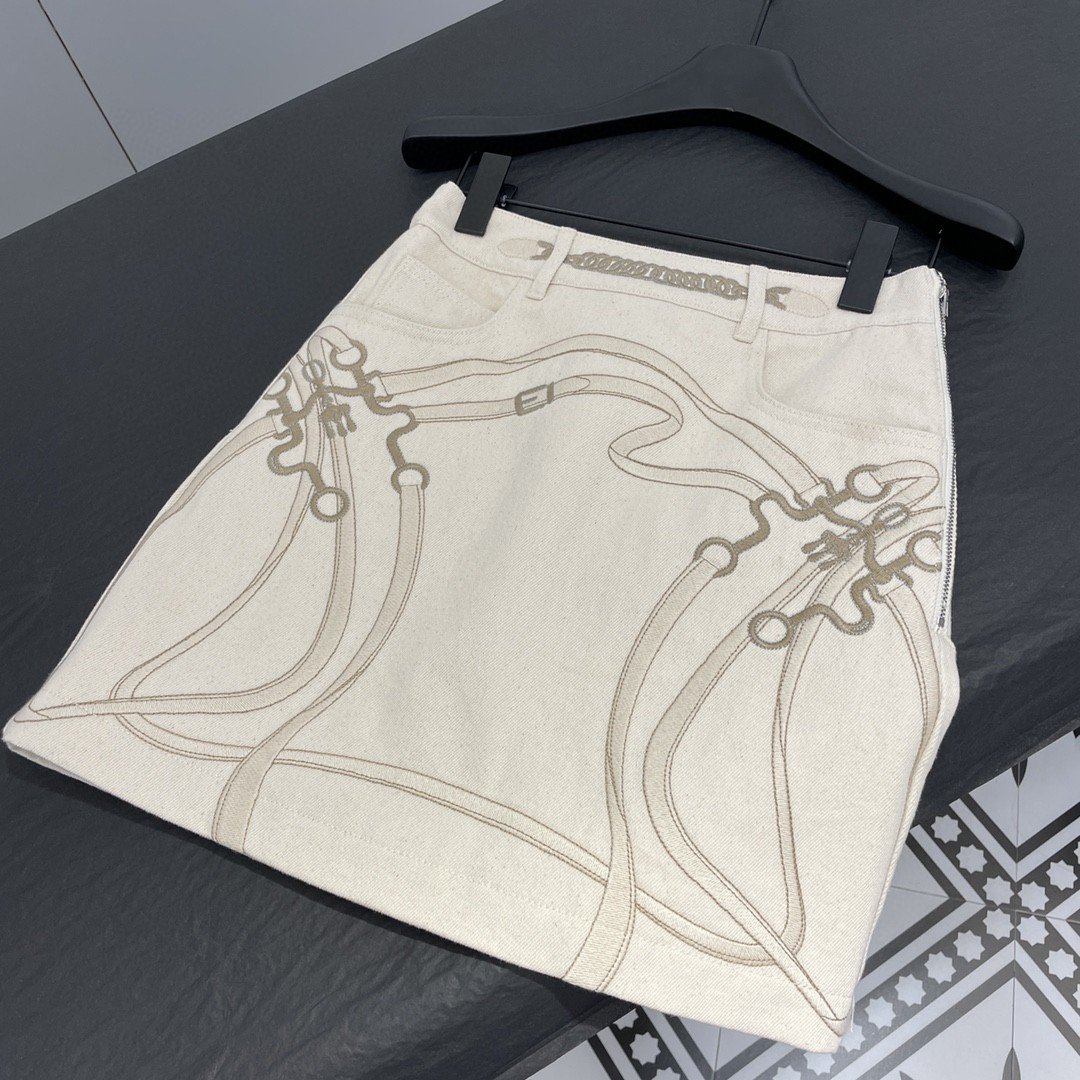 爱马仕刺绣牛仔夹克和裙子米色 C H2H0252DT9134