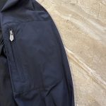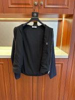 后袋夹克特别设计,主色为黑色,后袋中另加一种颜色,拉链在衬衫中间,口袋也有拉链,帽子设计很合适适合很多人的需求