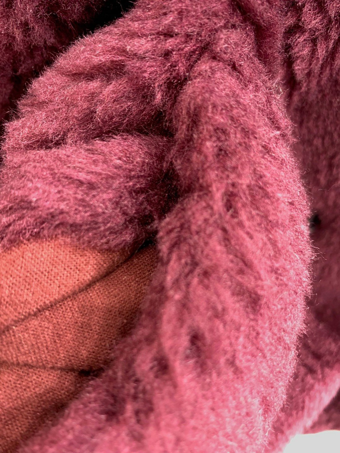 泰迪熊标志外套于 2013 年设计,其灵感源自 80 年代的一件经典服装,并立即成为一款热门外套。明星和有影响力的人都喜欢它的魅力和俏皮的完美结合。能够生产独特的人造毛皮。这件外套的丰盈体积彰显了这种面料的华丽奢华。