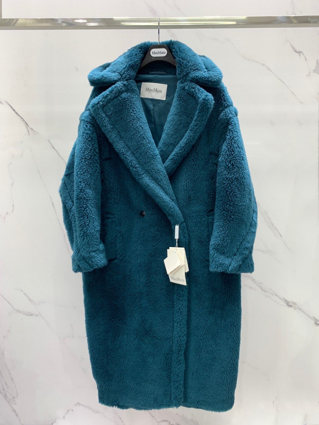 泰迪熊标志外套于 2013 年设计,灵感源自 80 年代的一件经典服装,并立即成为一款热门外套。明星和有影响力的人都喜欢它的魅力和俏皮的完美结合。能够生产独特的人造毛皮。这件外套的丰盈体积彰显了这种面料的华丽奢华。