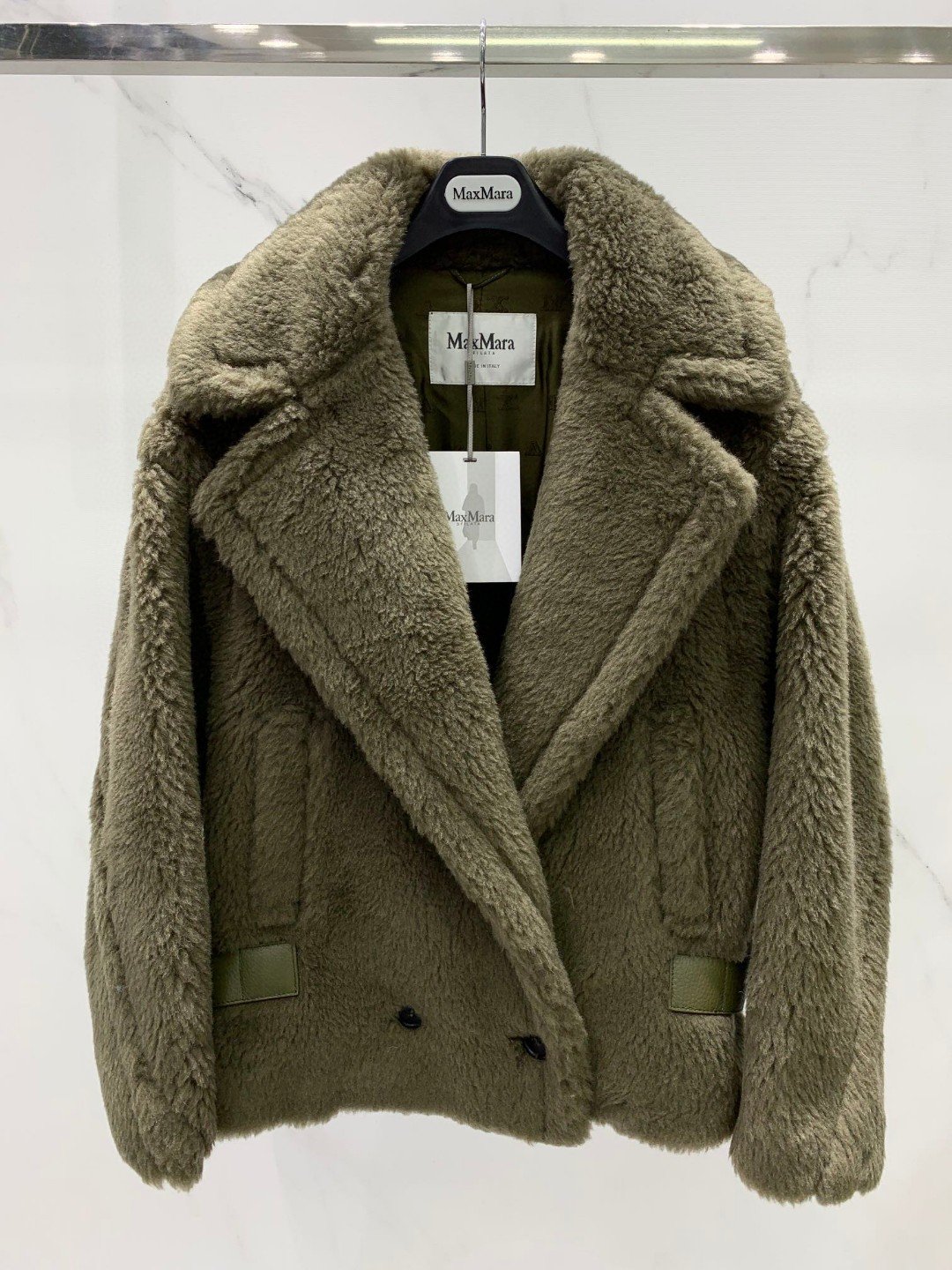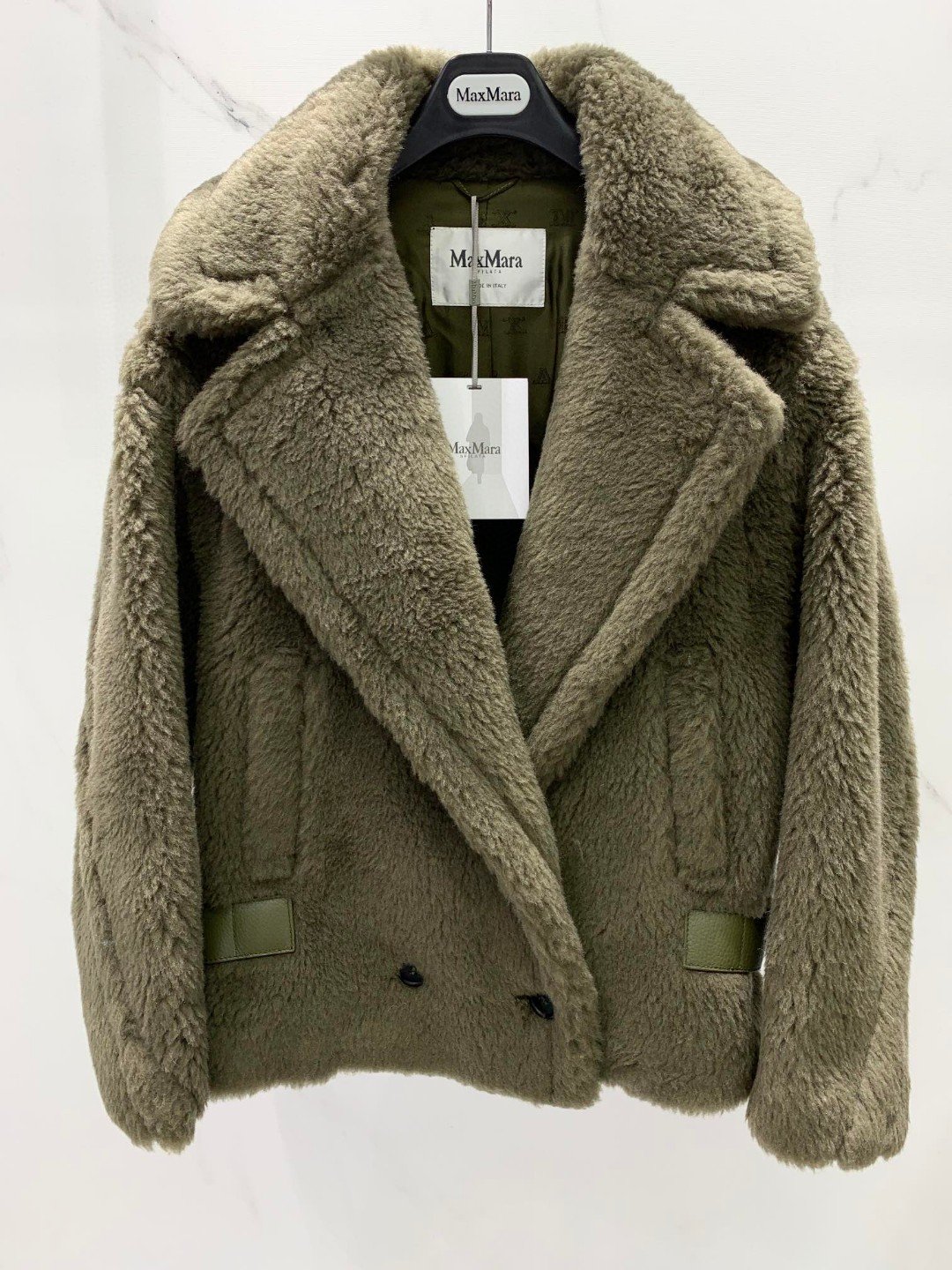 MaxMara 短款泰迪熊标志外套绿色卡其色