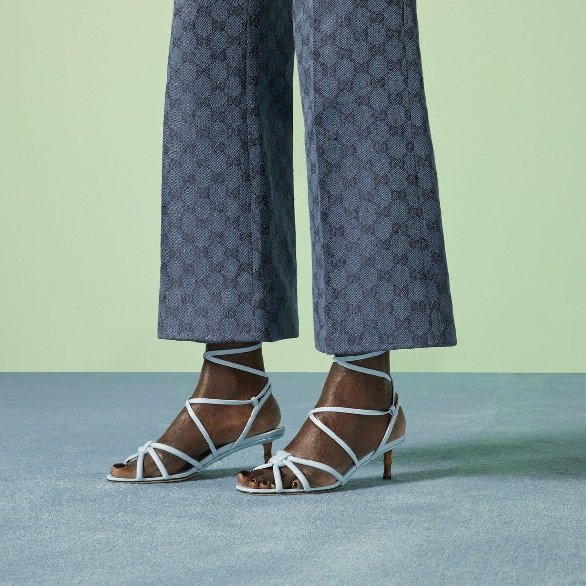 档案材料和细节以新方式融合在一起,创造出混合符号,庆祝品牌的过去和现在。作为 Gucci DNA 的一部分,竹跟定义了这款皮革系带凉鞋。