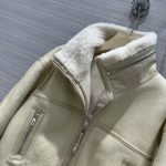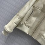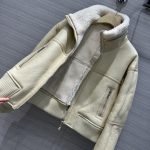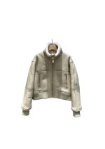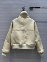 拉链夹克前面中间有拉链和拉环,前袋有滚边,袖口和底部有棉针织罗纹饰边,绗缝衬里