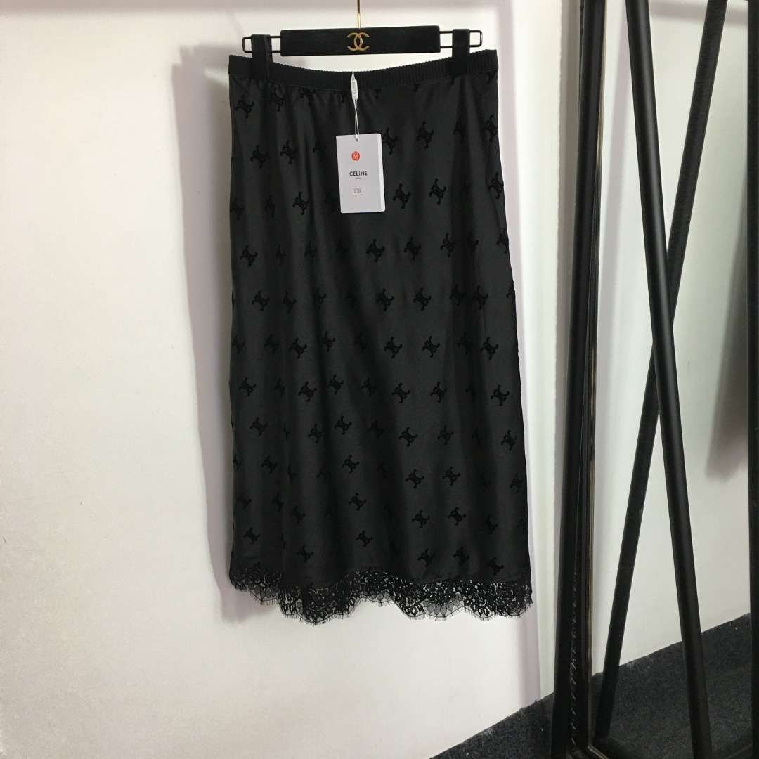 最新性感蕾丝下摆植绒标志高腰开衩裙