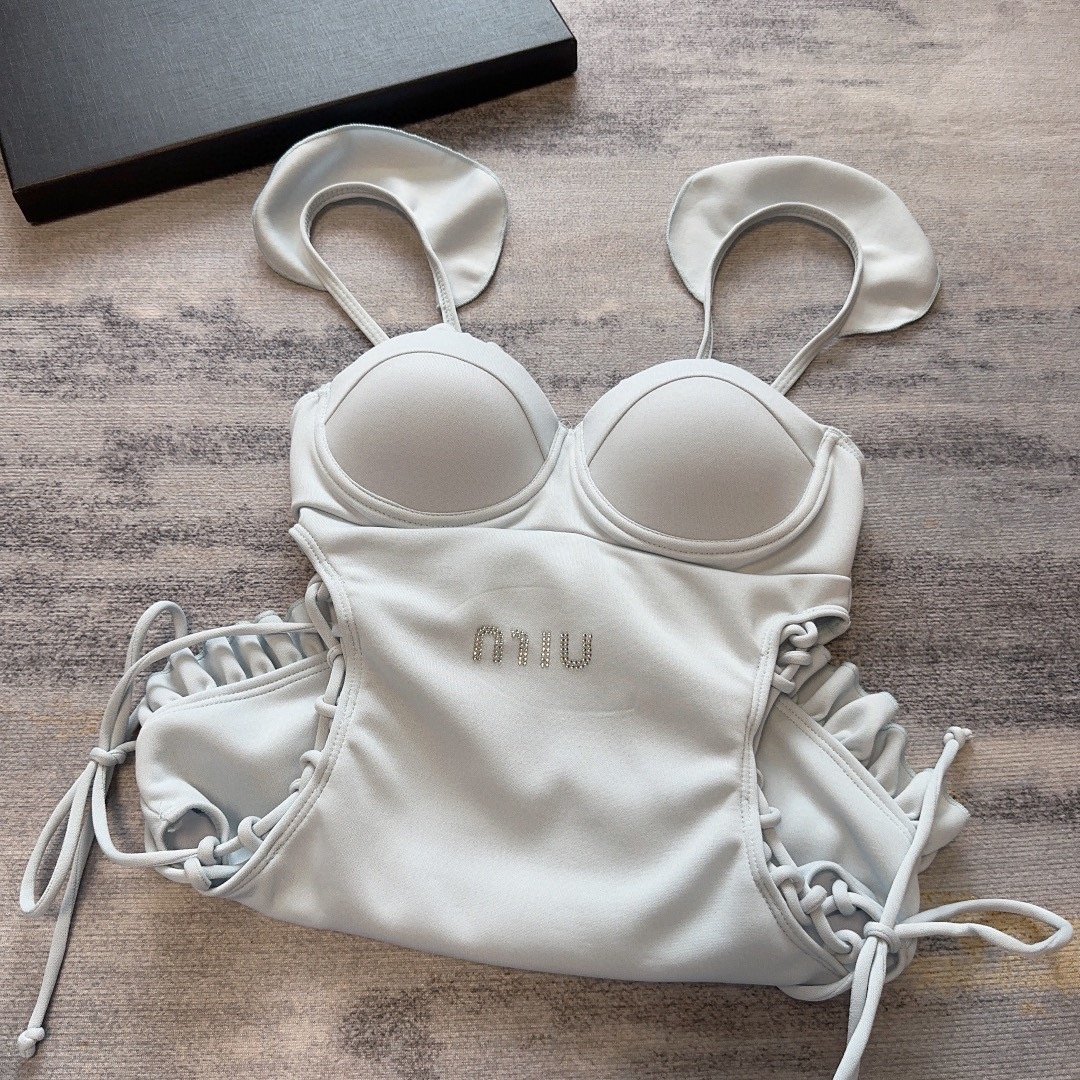 MiuMiu 腰身连体泳衣白色