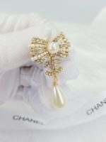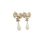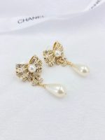 香奈儿蝴蝶结珍珠耳环金色调