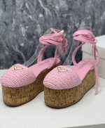 Prada 钩针编织坡跟凉鞋粉色