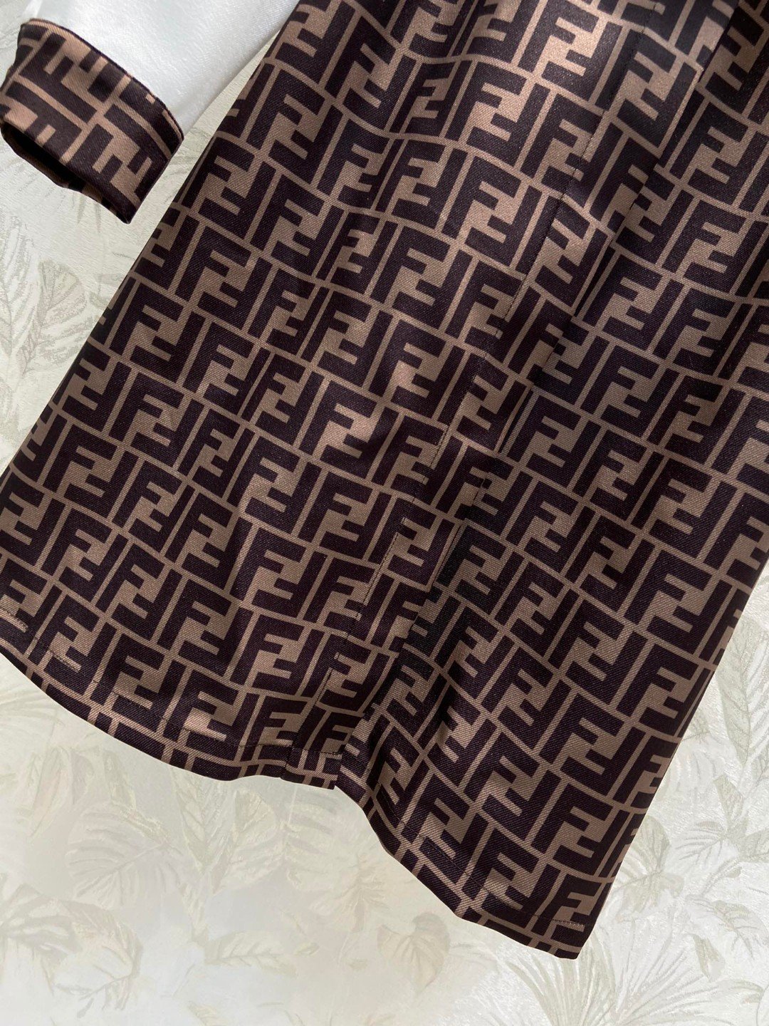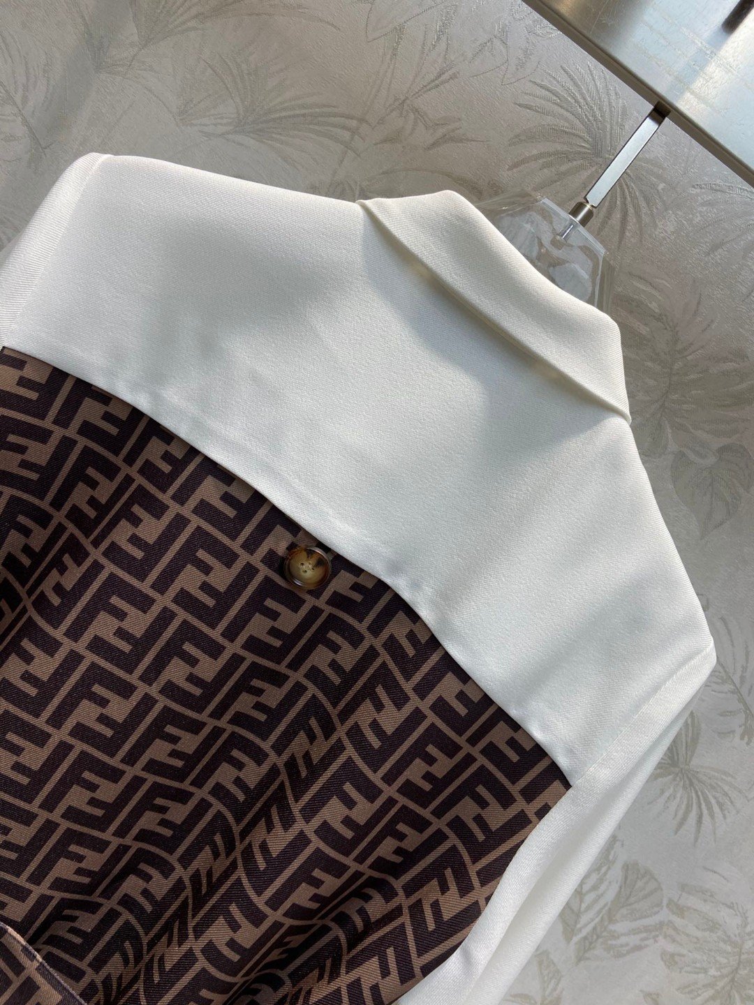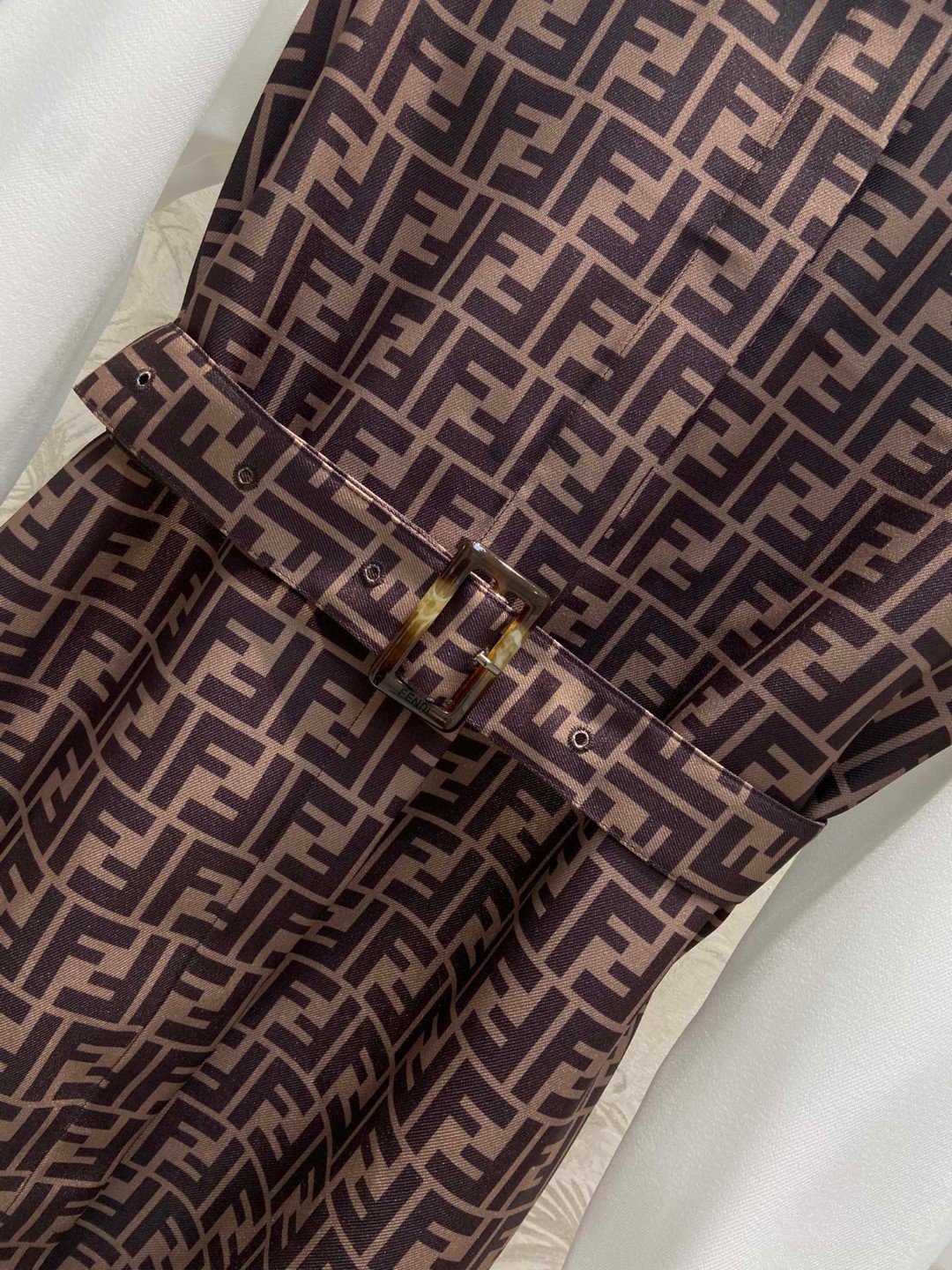 正面开口有纽扣、腰带,正面有 Fendi Roma 刺绣。