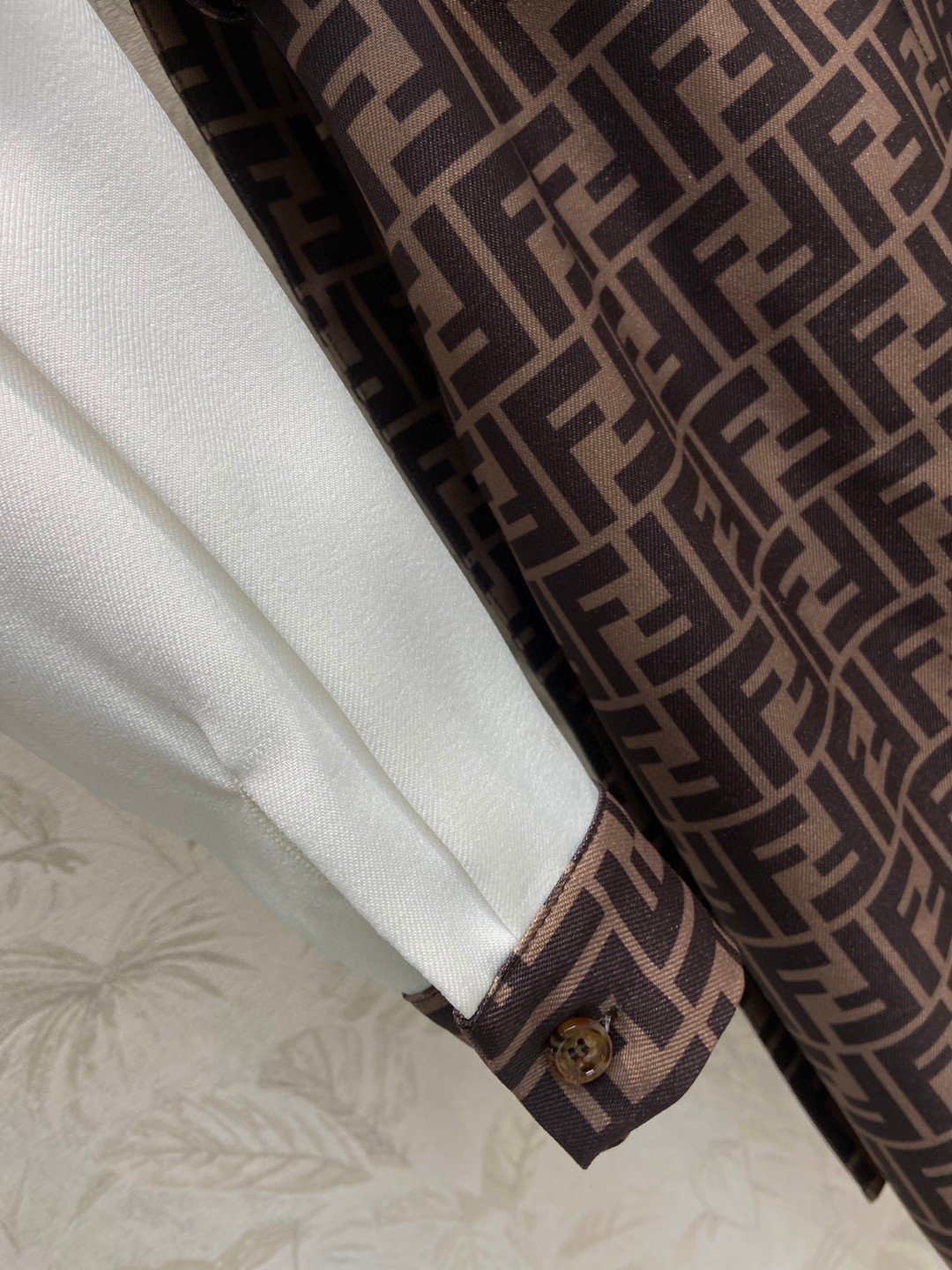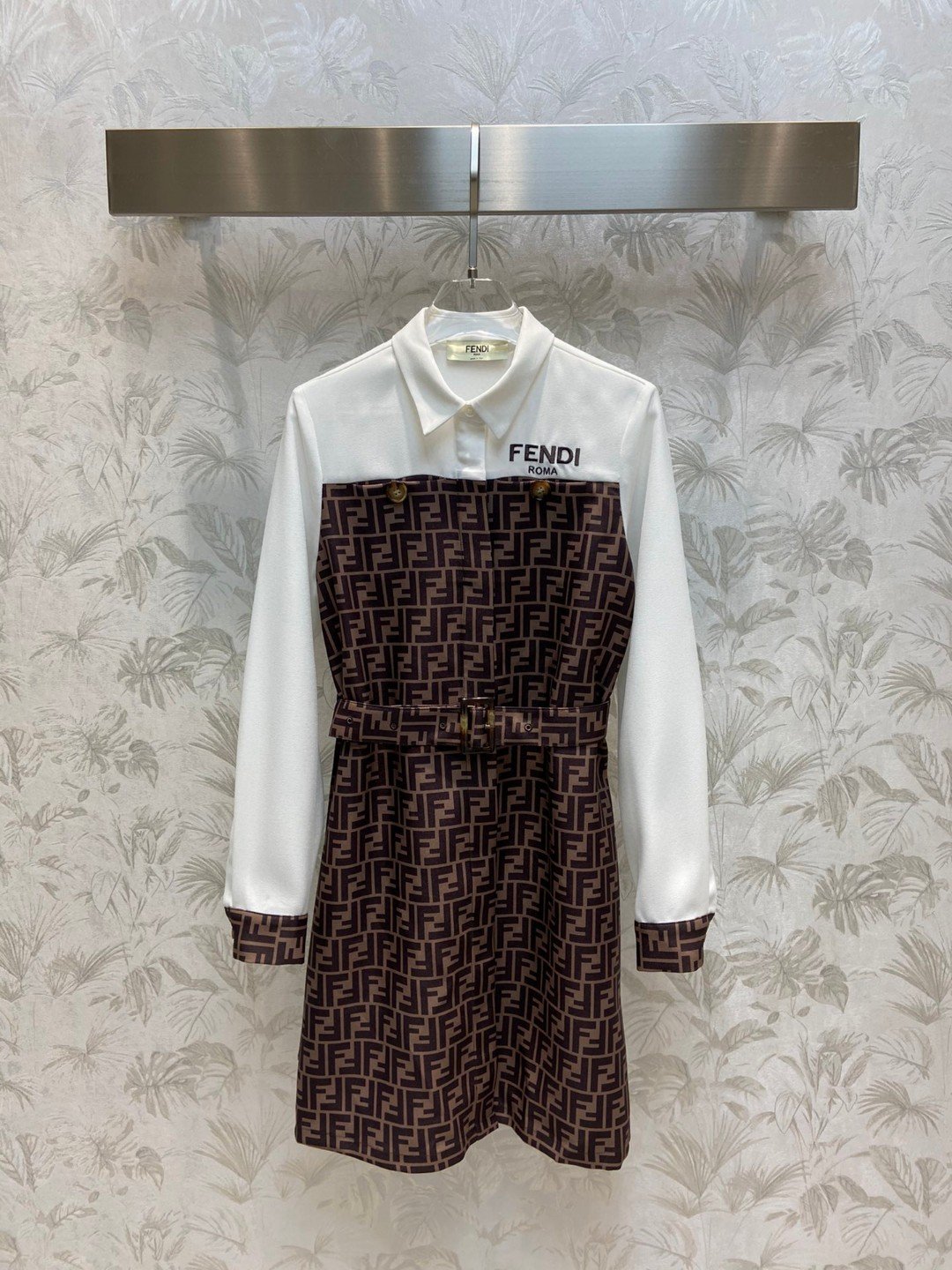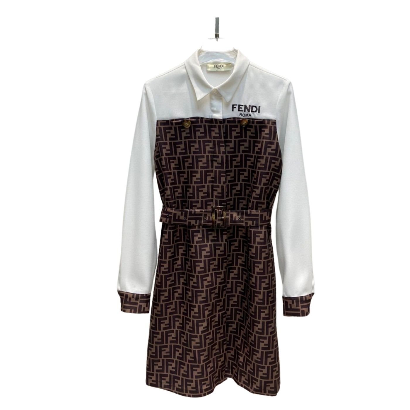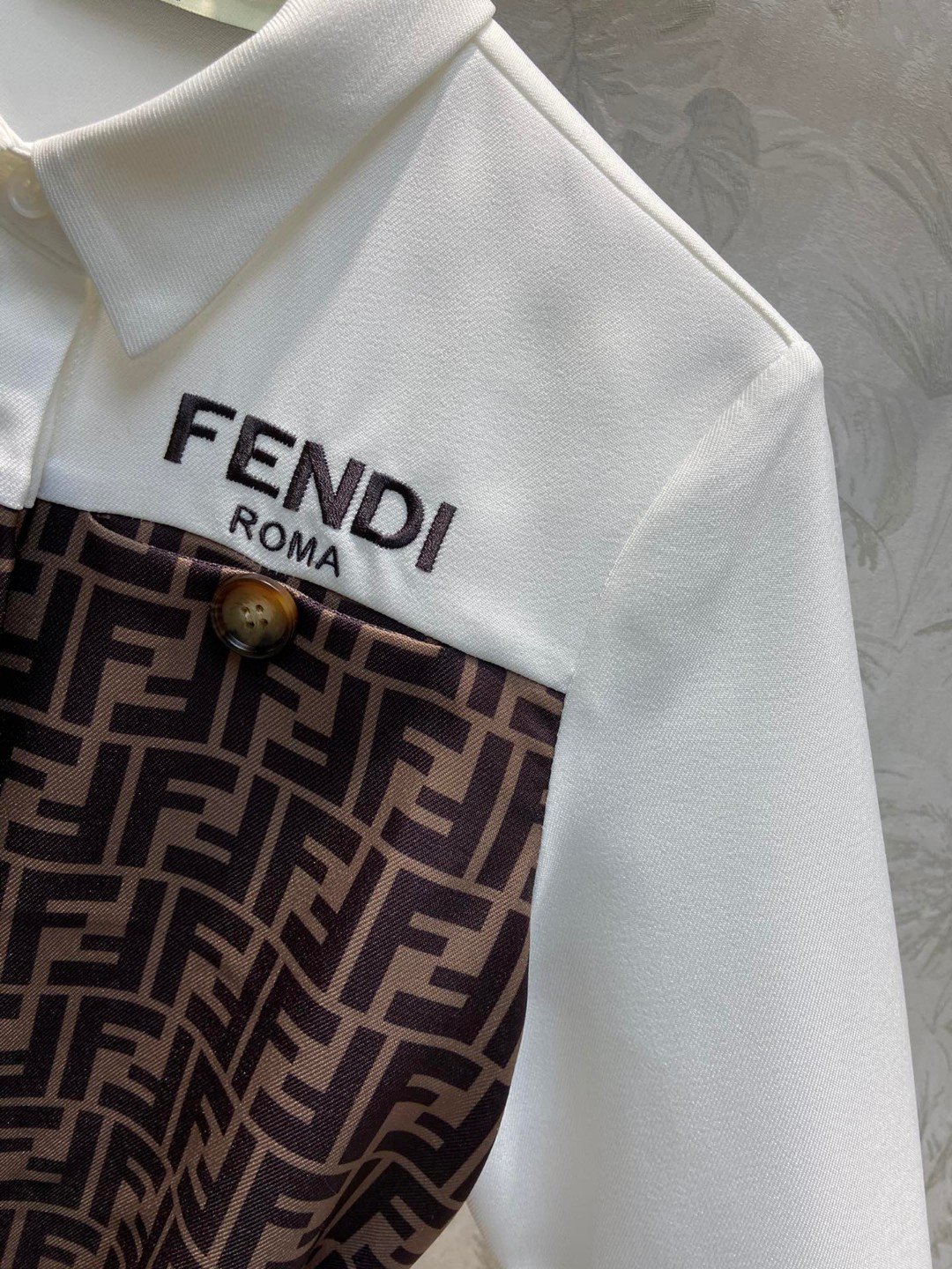 正面开口有纽扣、腰带,正面有 Fendi Roma 刺绣。