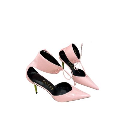 这双高跟鞋在经典廓形上进行了演绎,其特点是系带鞋口。金属细高跟进一步凸显了这种风格,营造出现代感。