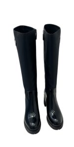 女式黑色拉丝靴子 15.3 英寸/39 厘米