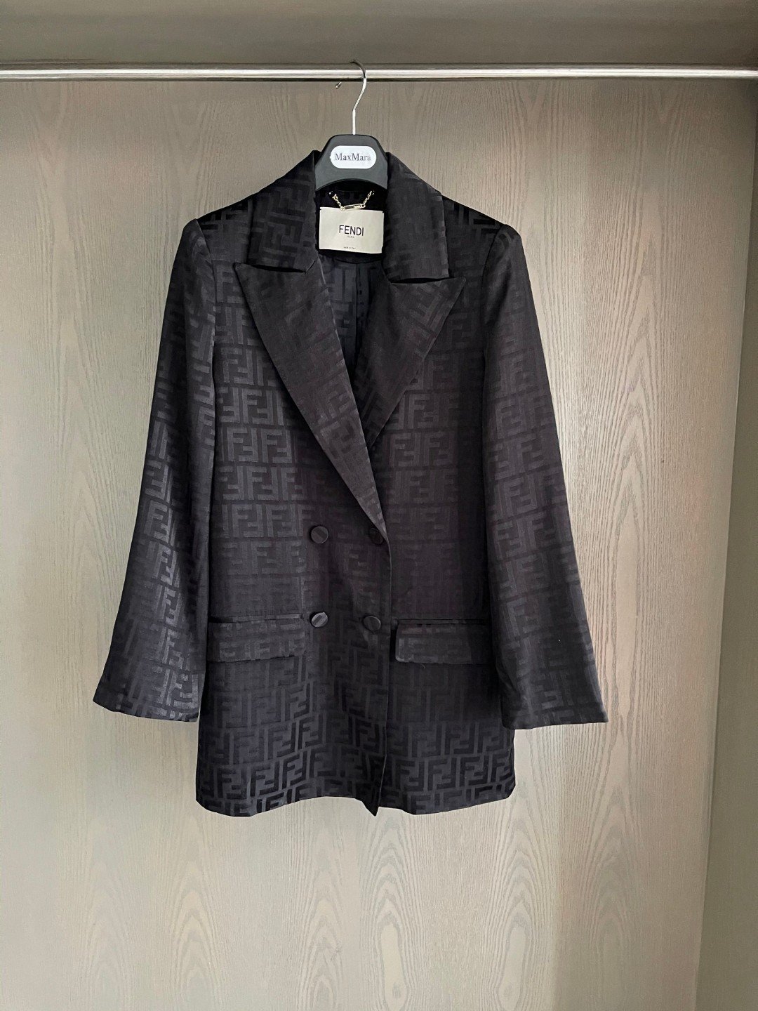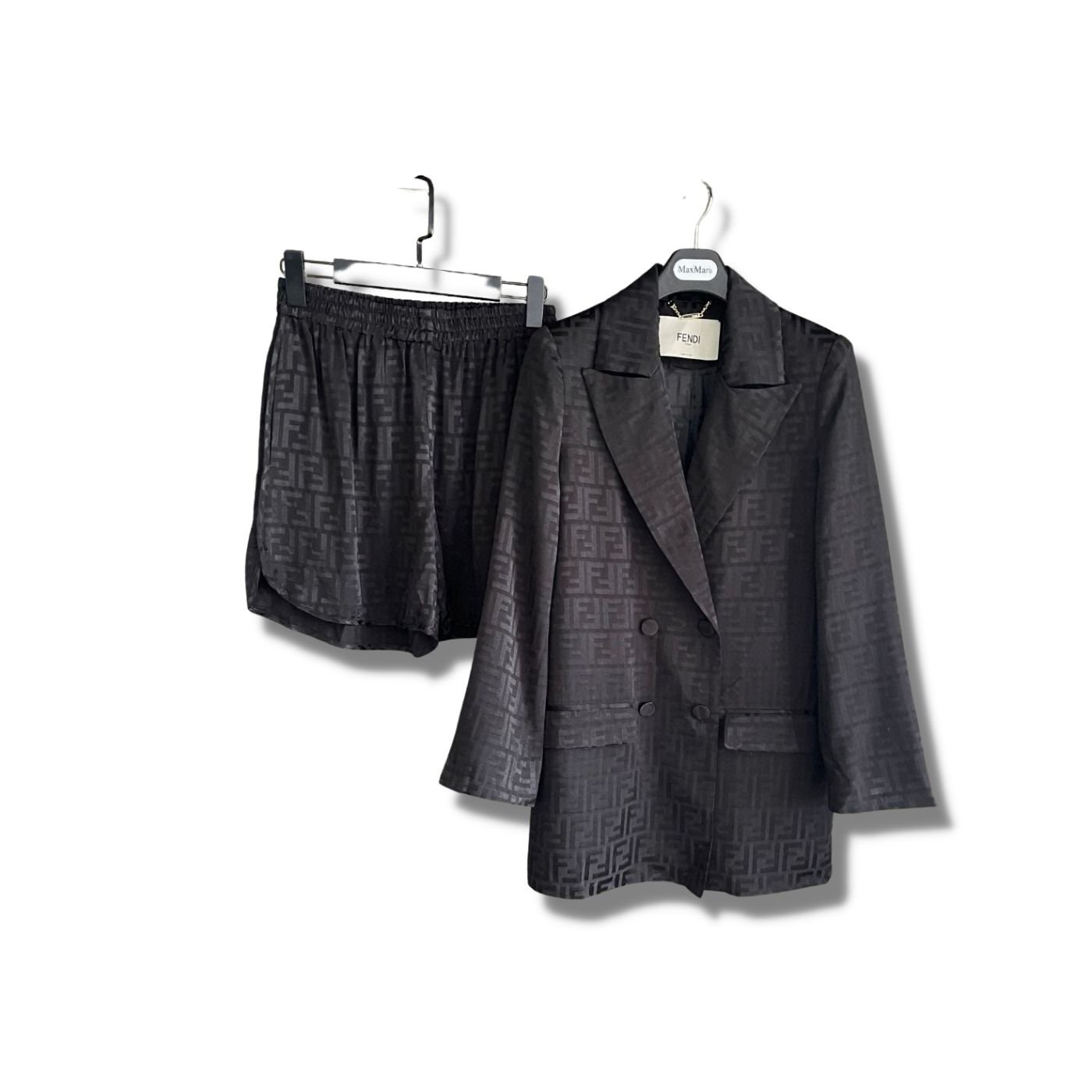 Fendi 织物西装外套和牛仔短裤黑色