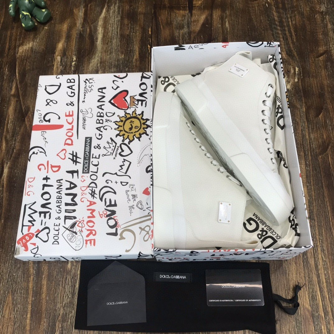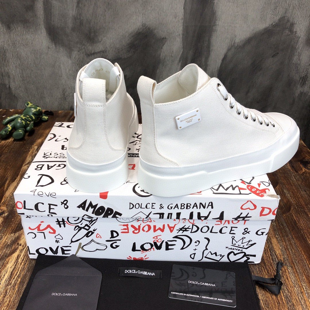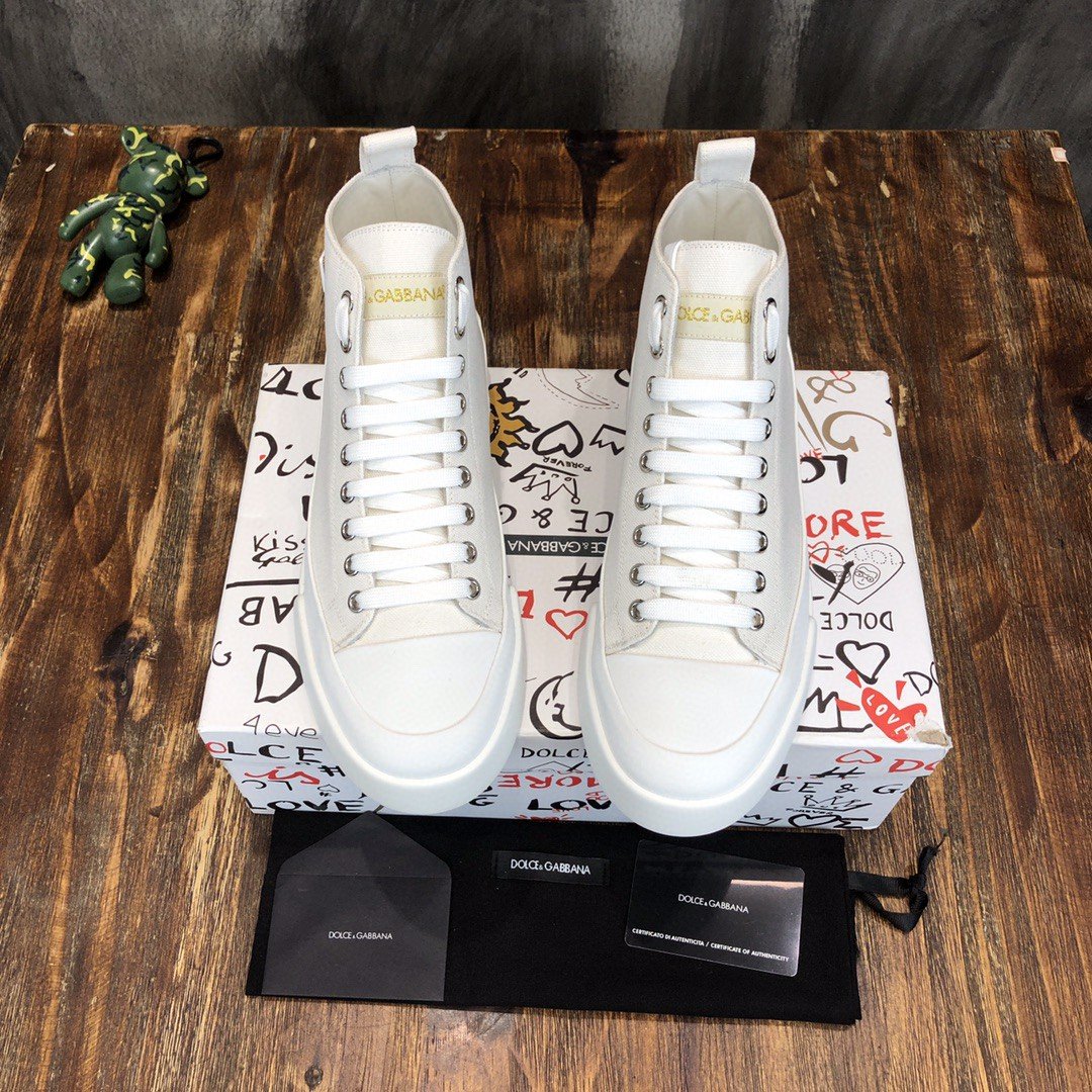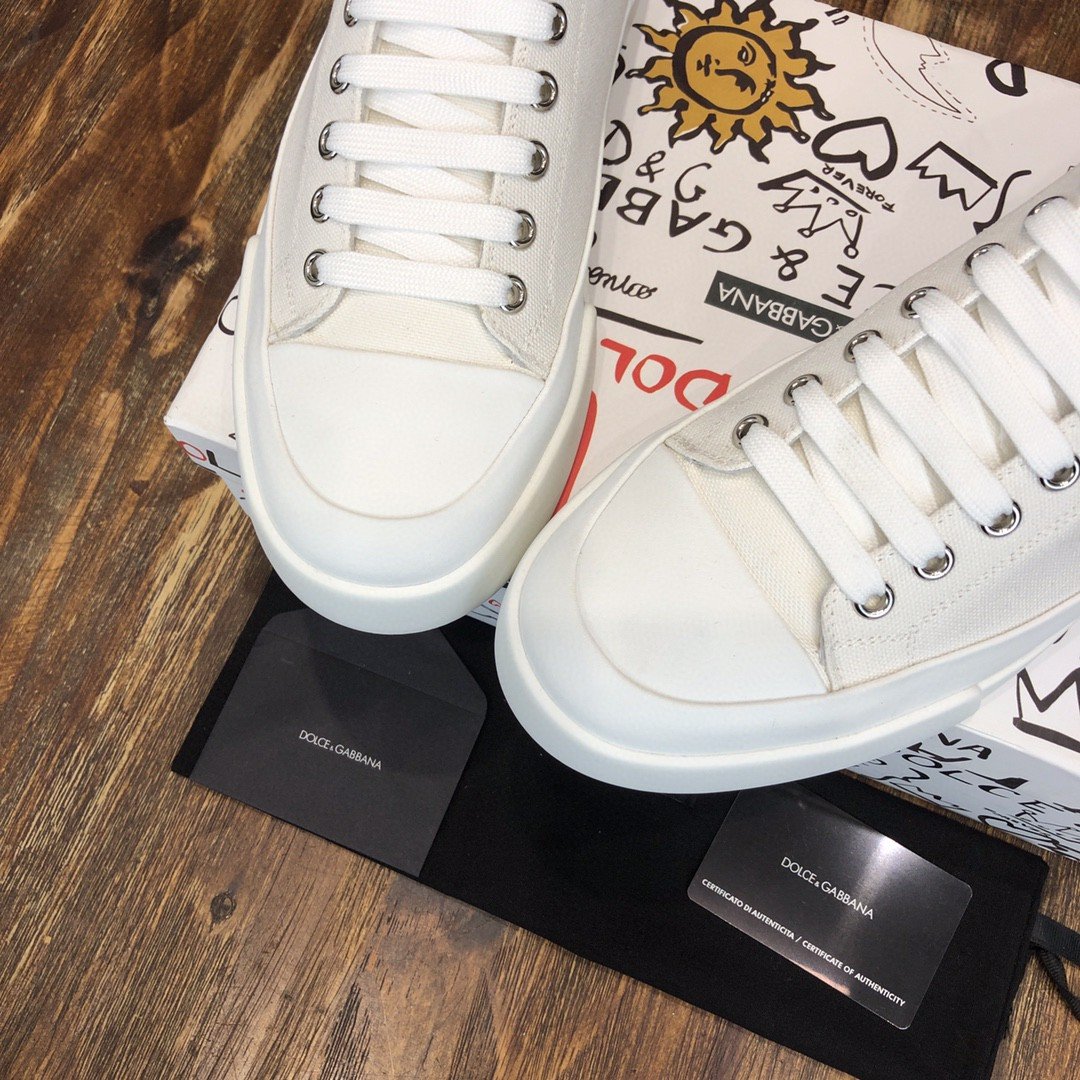 杜嘉班纳Gabbana 双色帆布 Portofino 轻便中帮运动鞋带 DG 徽标白色男士 DG 鞋