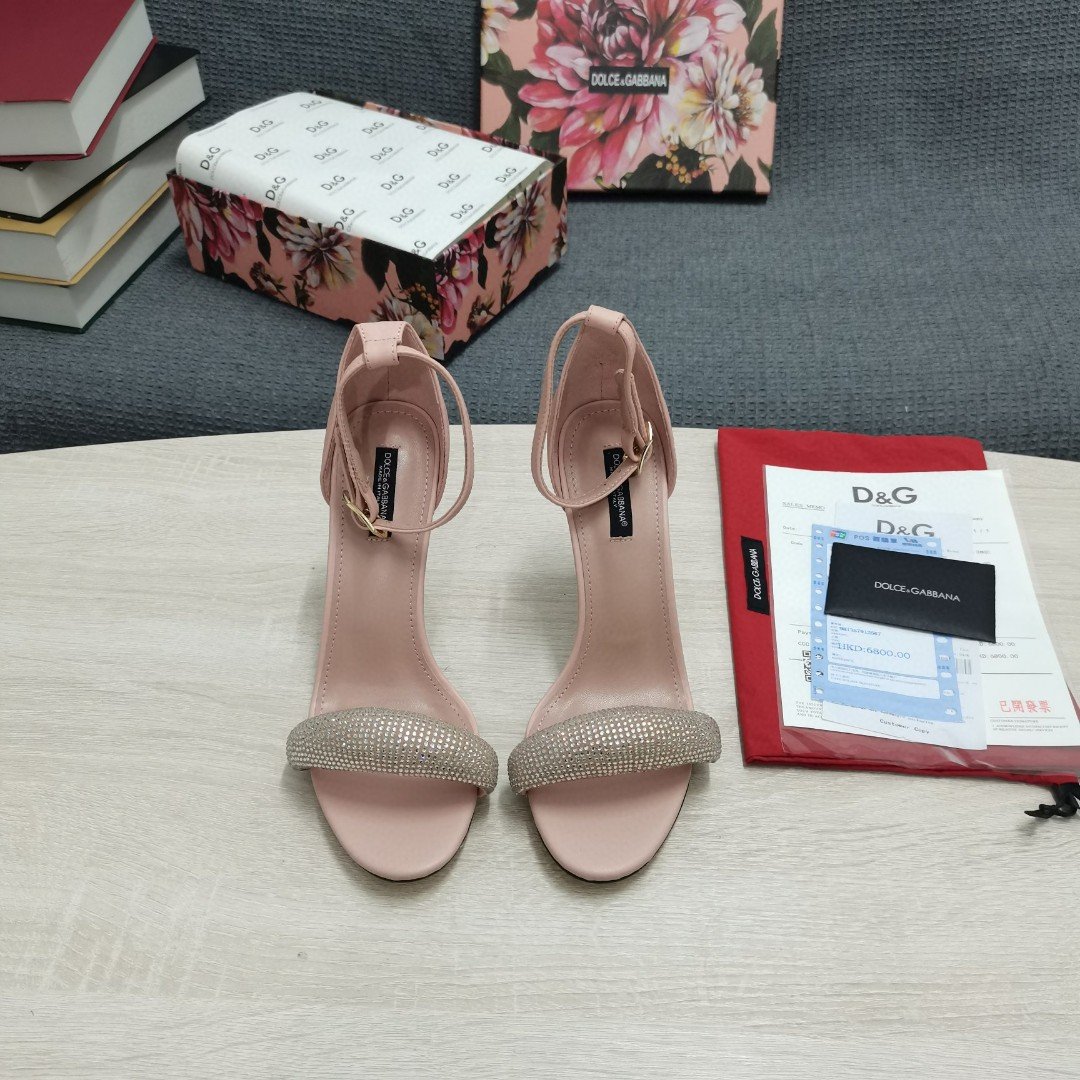 杜嘉班纳Gabbana 缎粉色漆皮凉鞋,适合 DG 女式鞋