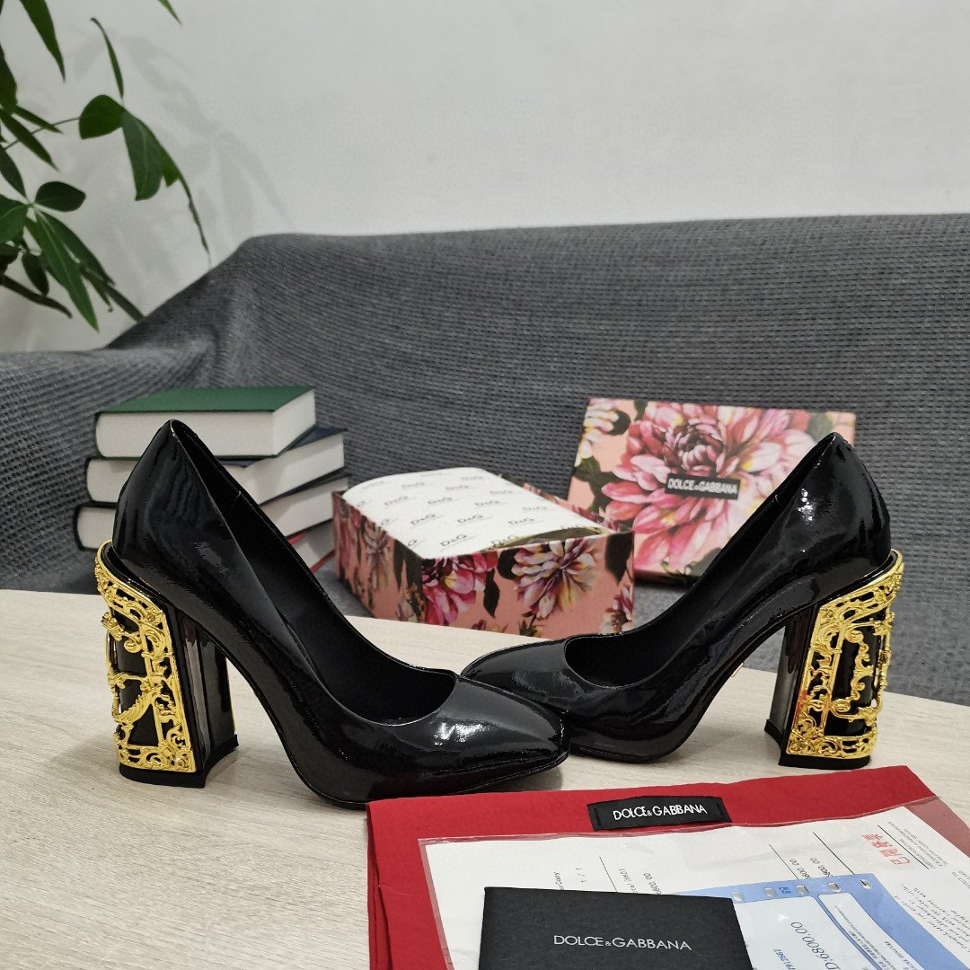 杜嘉班纳Gabbana 女式 DG 鞋款黑色纳帕高跟鞋