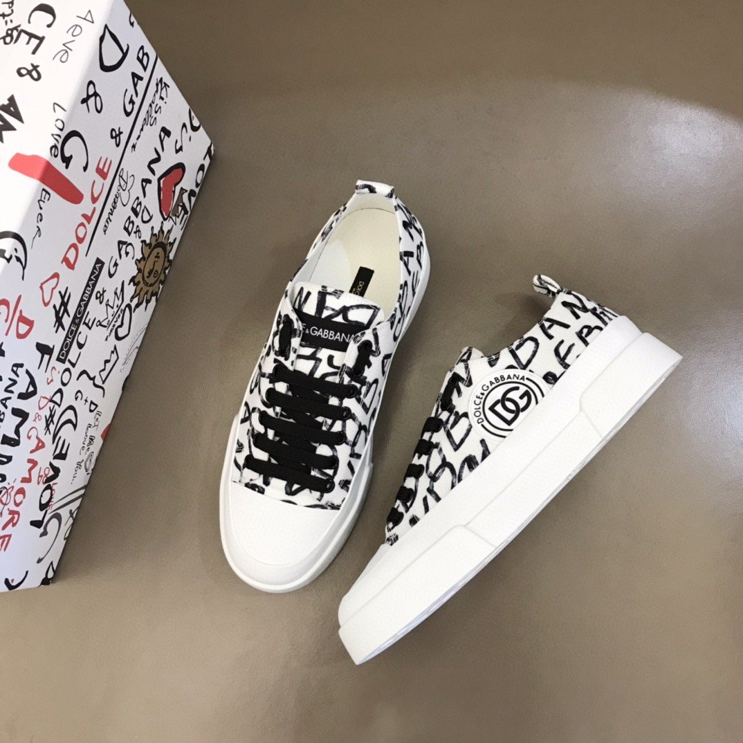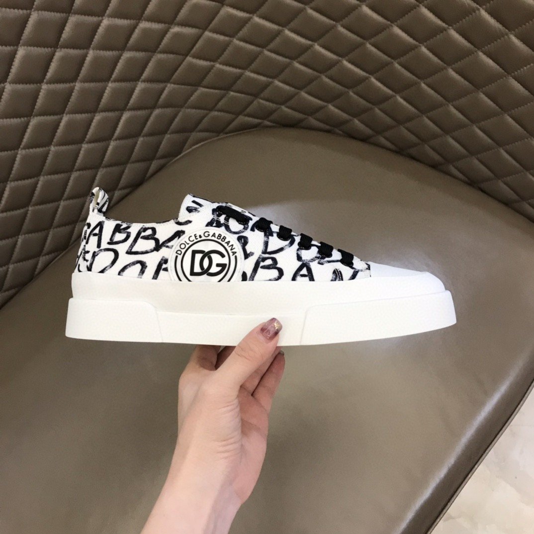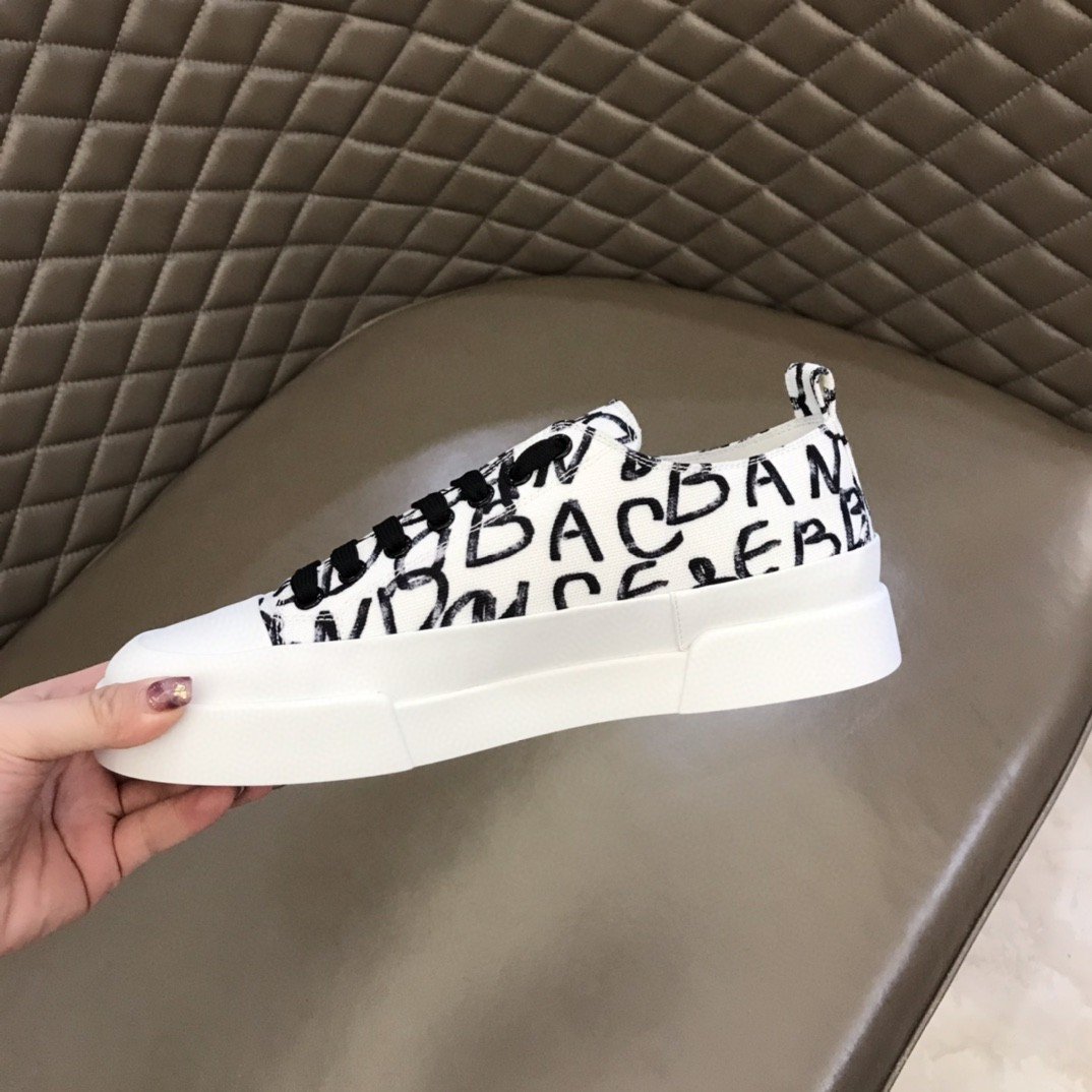 杜嘉班纳Gabbana 手绘帆布 Portofino 轻便运动鞋白色男士 DG 鞋