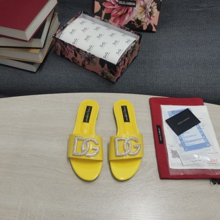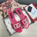 杜嘉班纳Gabbana 烫金鬣蜥印花拖鞋,带有水钻细节 DG 徽标粉色,适合女式 DG 鞋