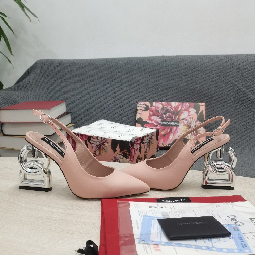 杜嘉班纳Gabbana 3.5 跟粉色缎面凉鞋 女式 DG 鞋