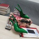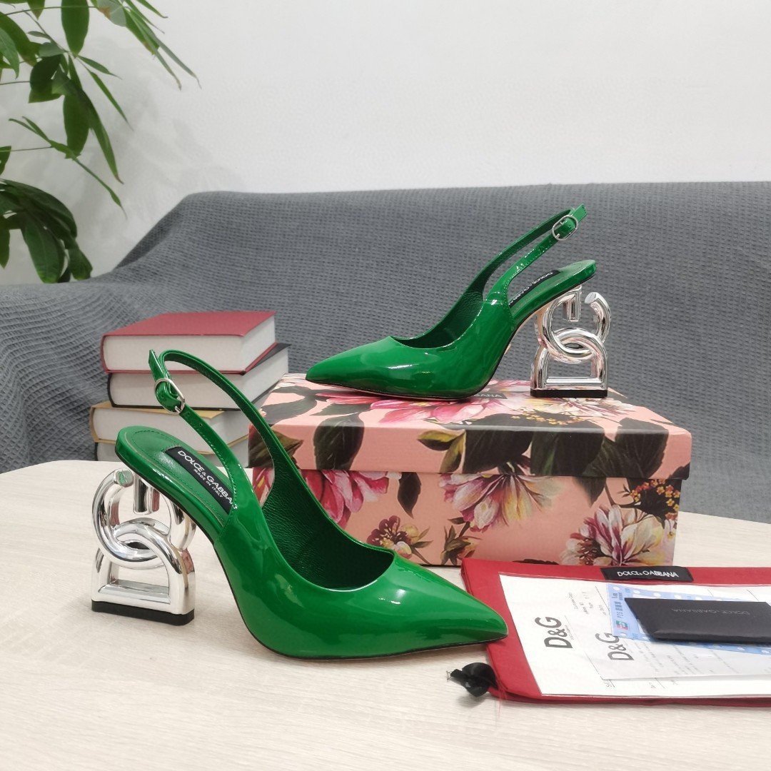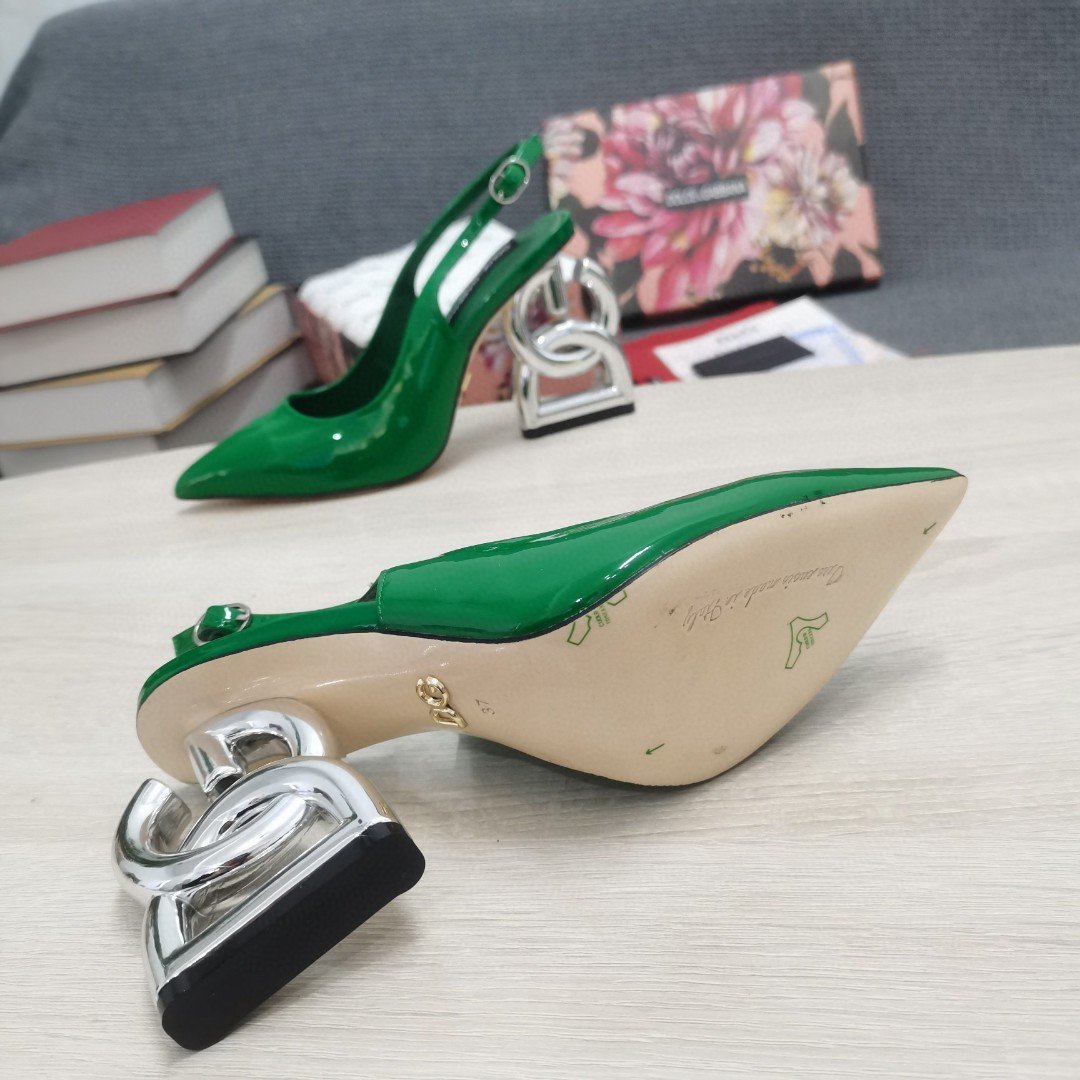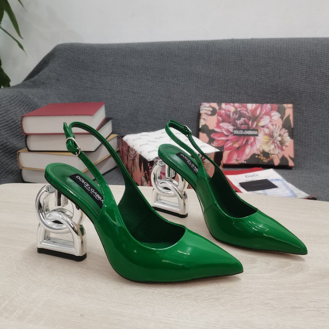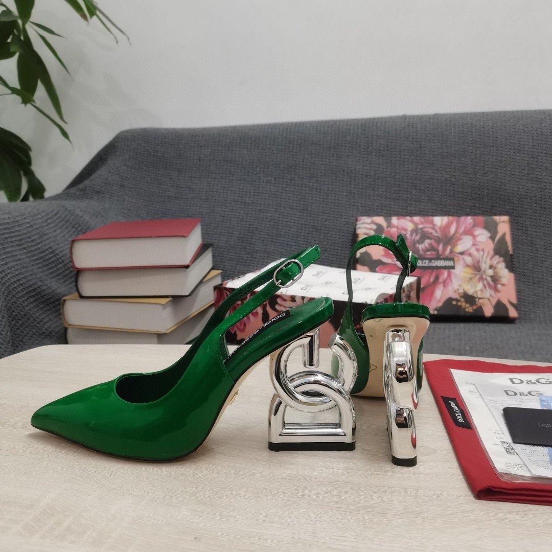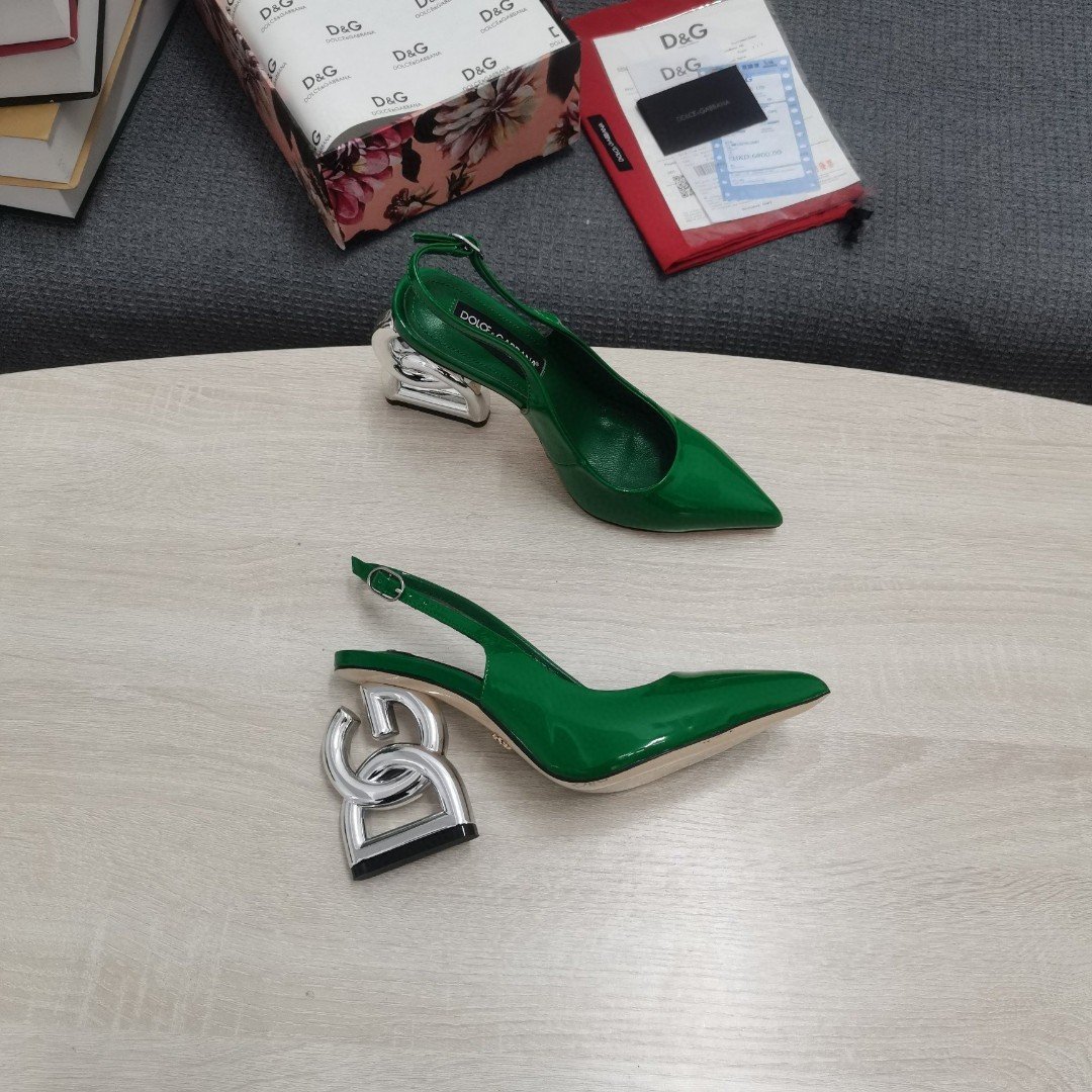 杜嘉班纳Gabbana 3.5 跟绿色缎面凉鞋,适合女式 DG 鞋