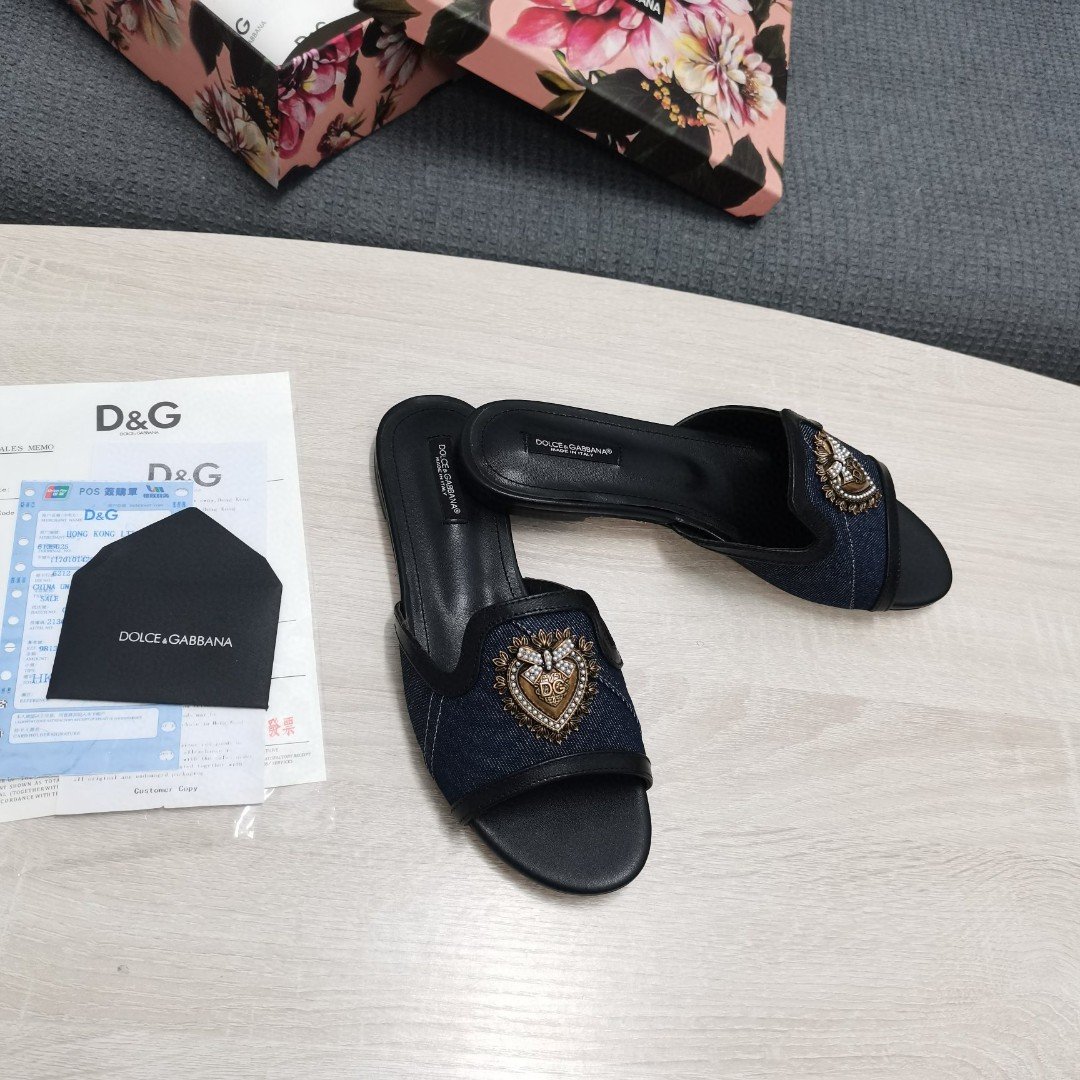 杜嘉班纳Gabbana Devotion 迷彩拼接黑色拖鞋 DG 女式鞋