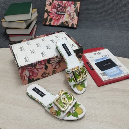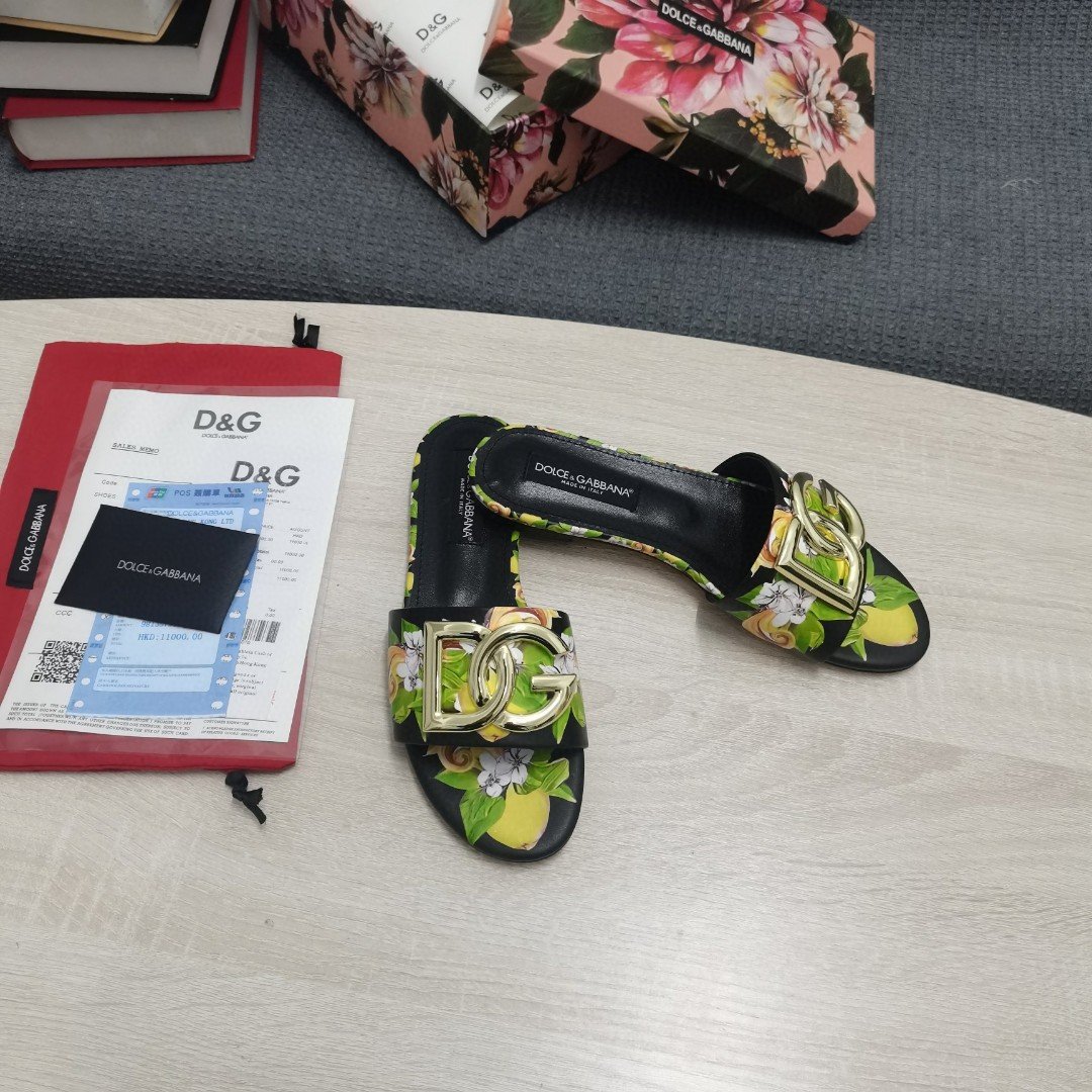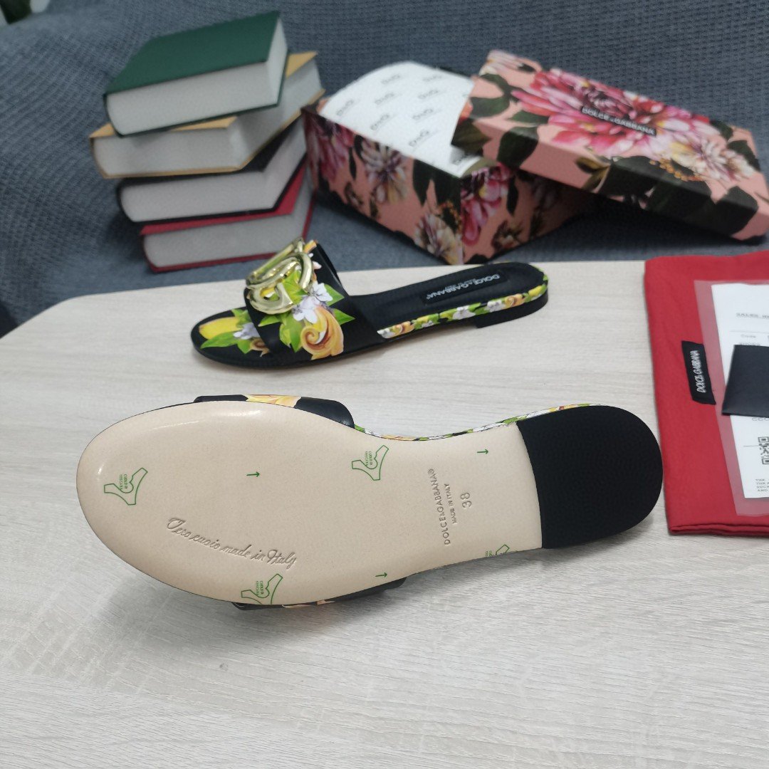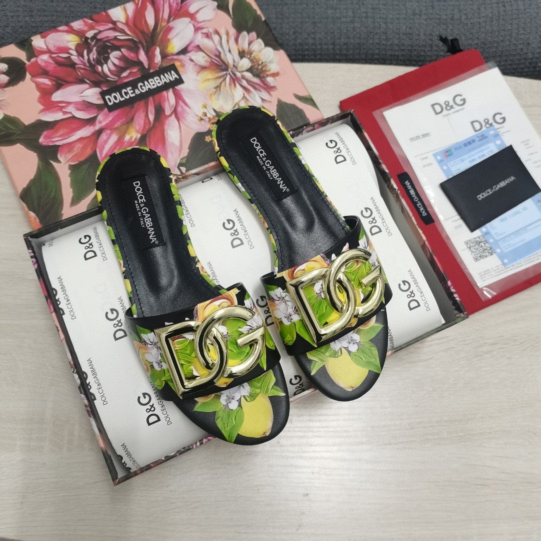 杜嘉班纳Gabbana DG 徽标提花拖鞋 黑色 女式 DG 鞋履