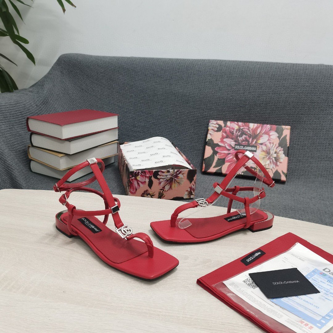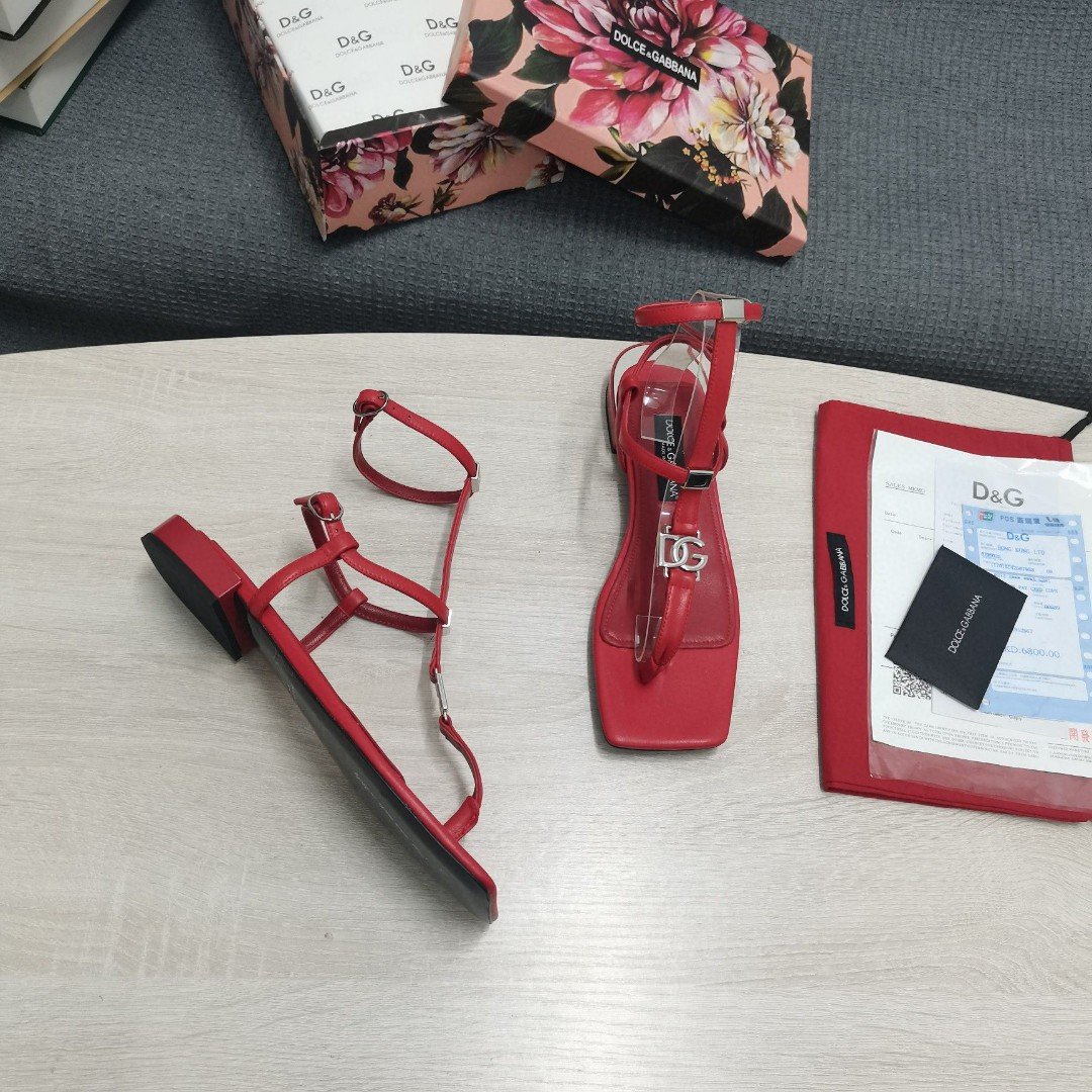 杜嘉班纳Gabbana DG 纳帕皮革夹趾凉鞋 红色 女士 DG 鞋履