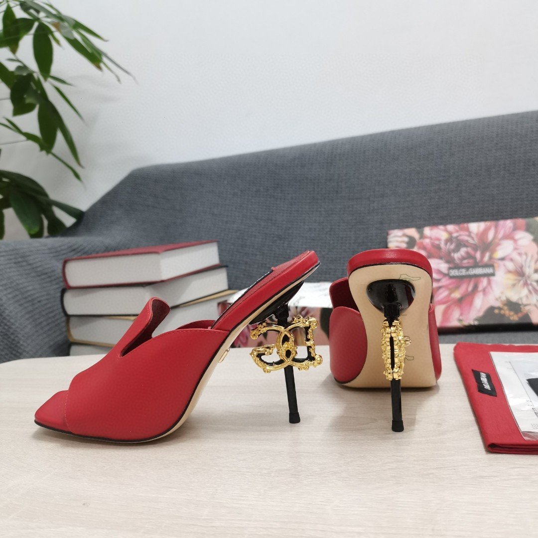 杜嘉班纳Gabbana Lguana 印花穆勒鞋 红色 女士 DG 鞋履