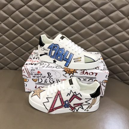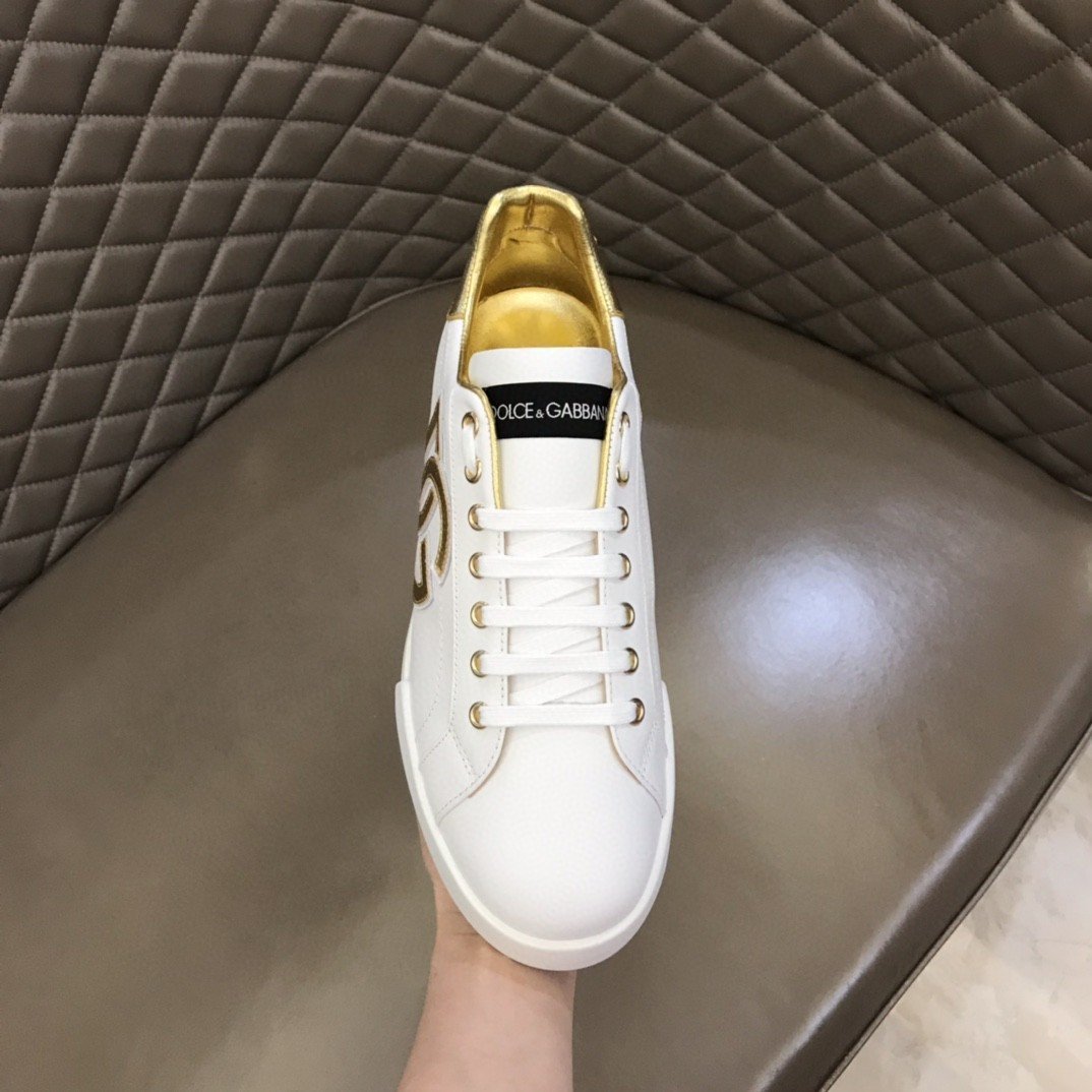 杜嘉班纳Gabbana Nappa Portofino 男士 DG 徽标印花白色运动鞋 DG 鞋履