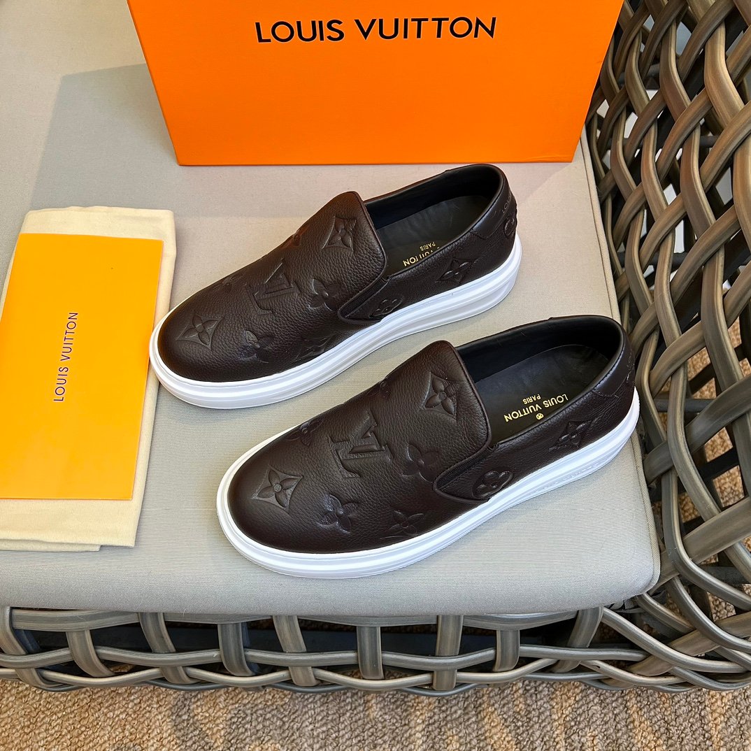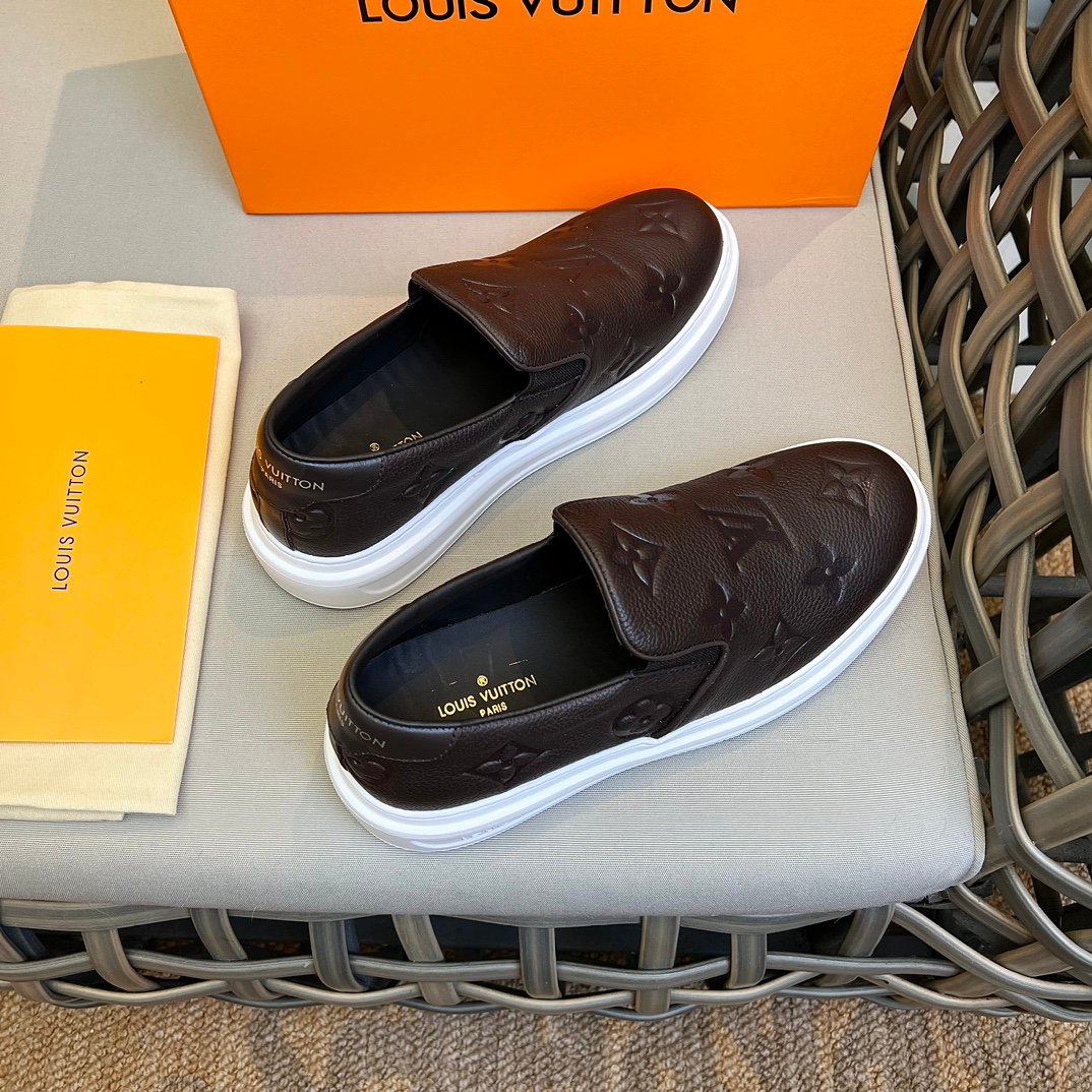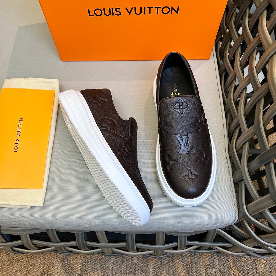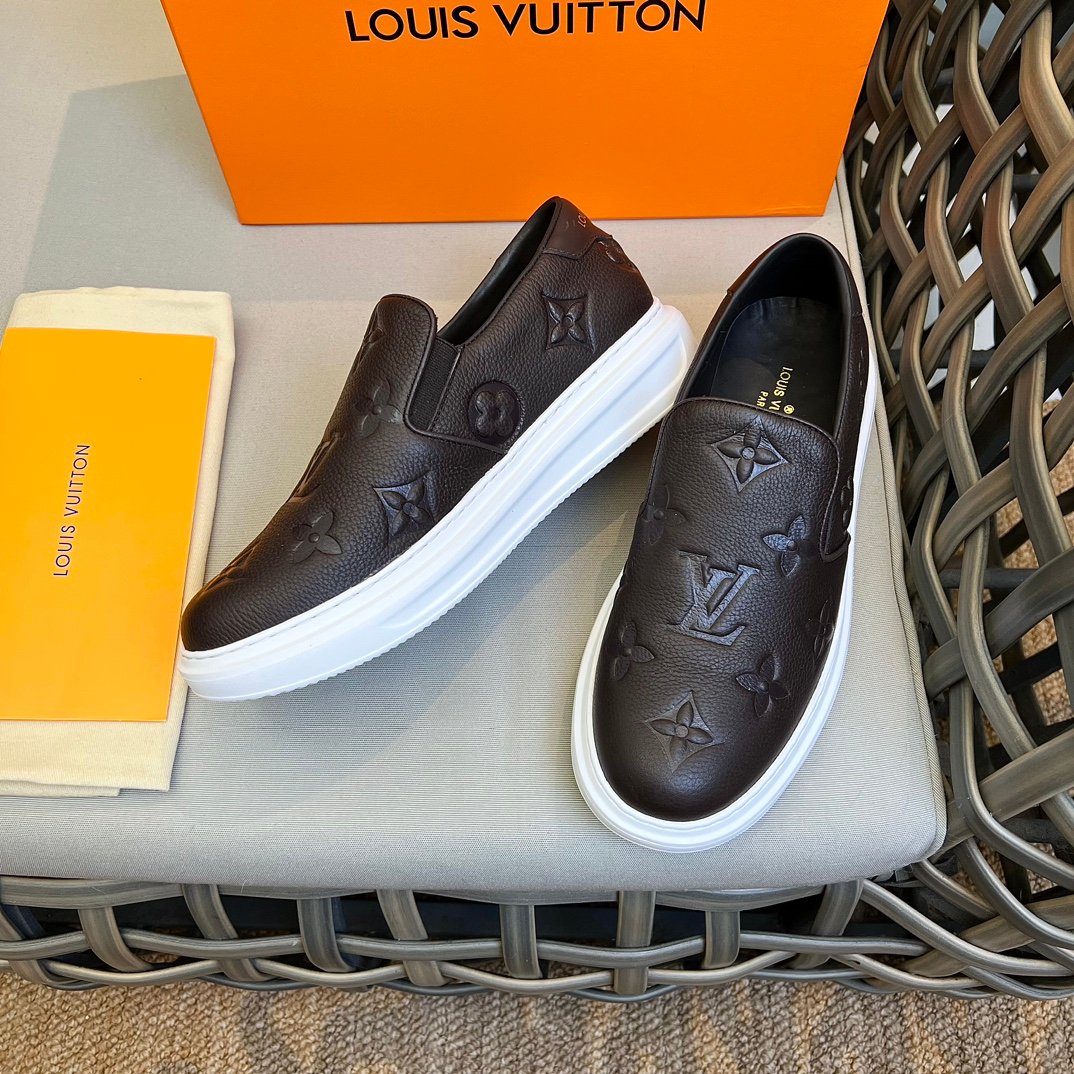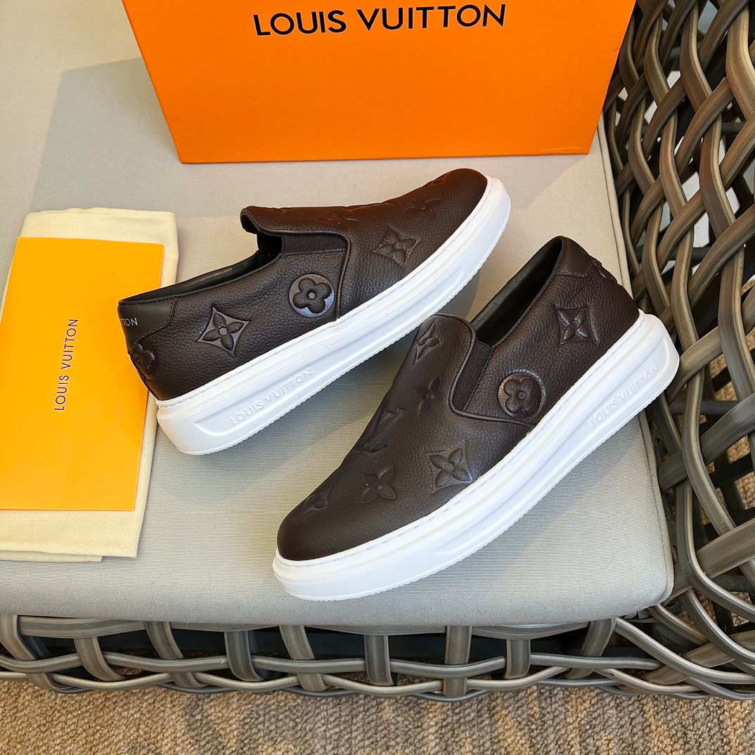 Beverly Hills 一脚蹬运动鞋采用柔软的粒面设计,压纹超大版本的标志性 Monogram 图案。该鞋款的特点是其厚实而轻盈的白色橡胶外底,上面刻有路易威登标志。低调的弹性嵌片让这款鞋款可以轻松穿脱。