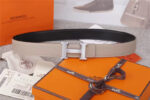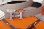 - 爱马仕腰带 Hermès 爱马仕原单腰带 经典H拉丝扣头 海外进口荔枝纹带条 浅灰