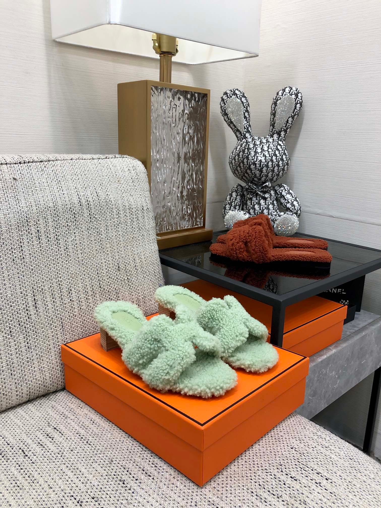 爱马仕 Oasis 女式亮绿色凉鞋 1.97 英寸/5 厘米