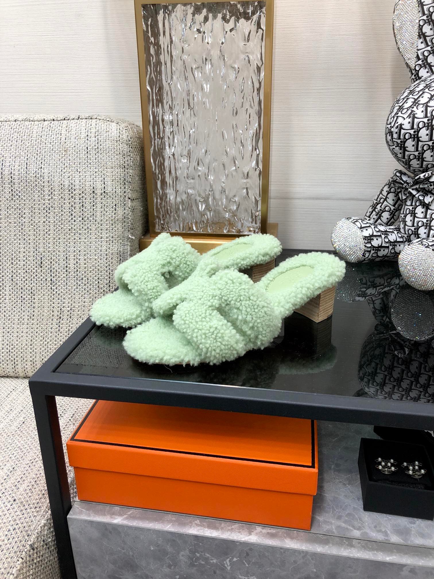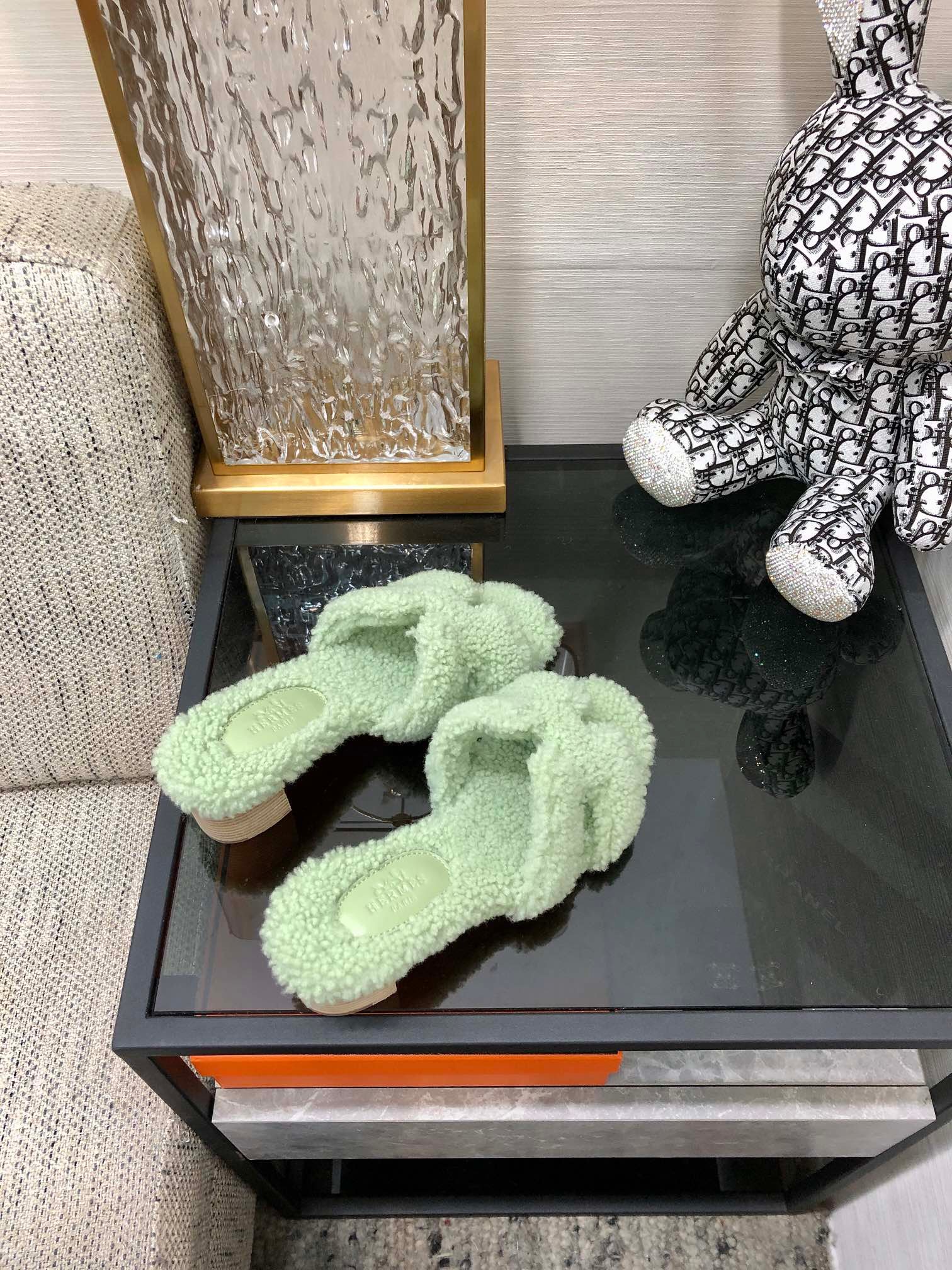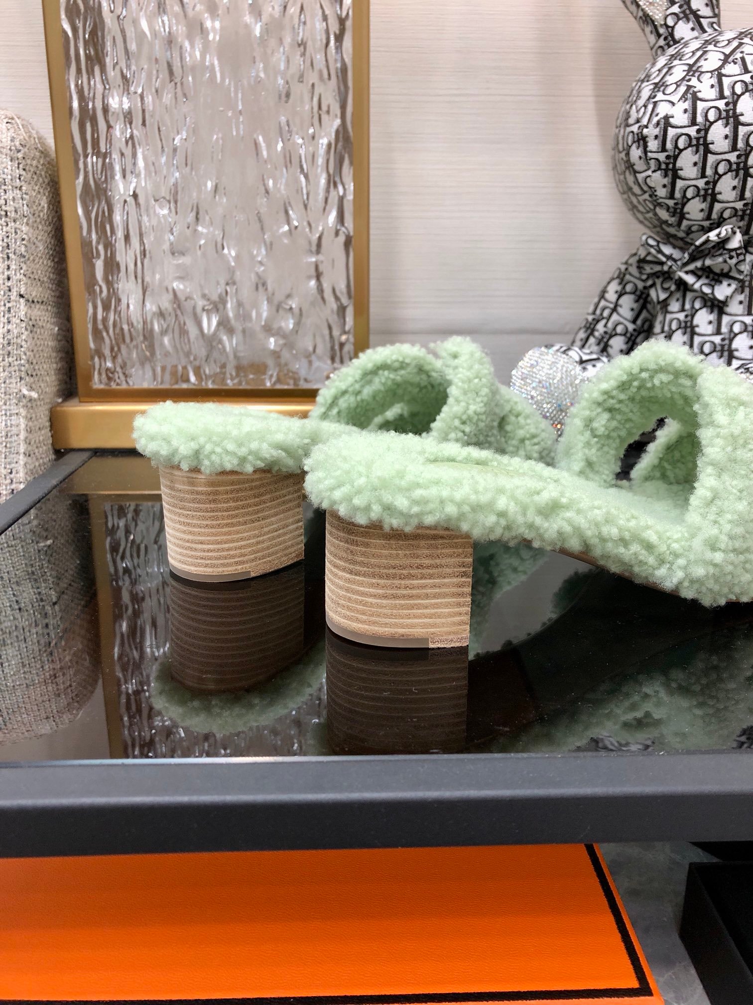 爱马仕 Oasis 女式凉鞋亮绿色 1.97 英寸/5 厘米