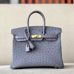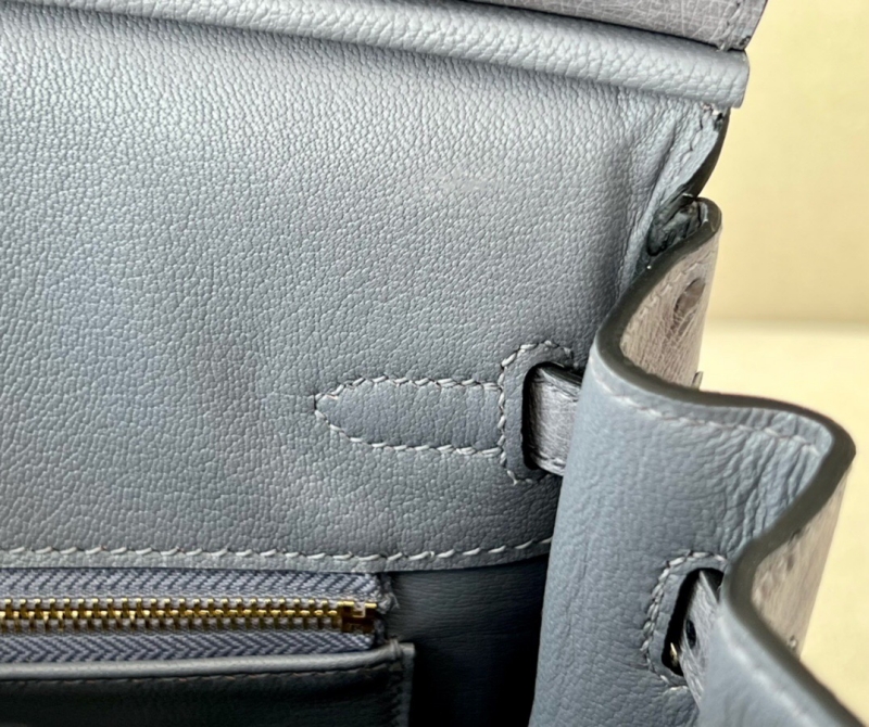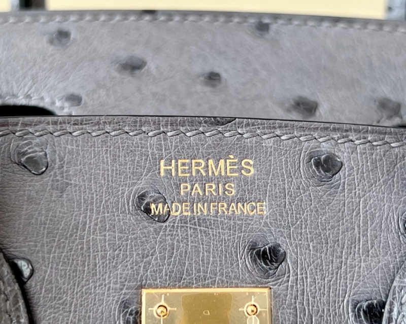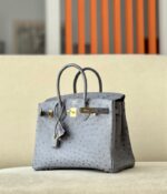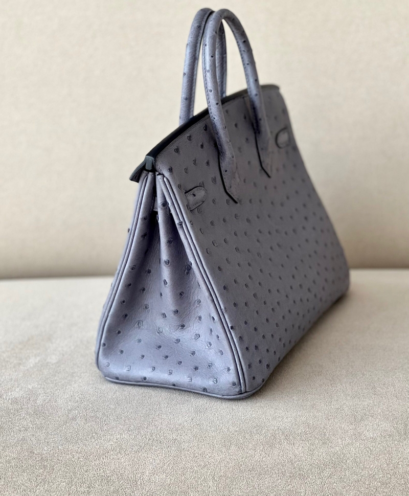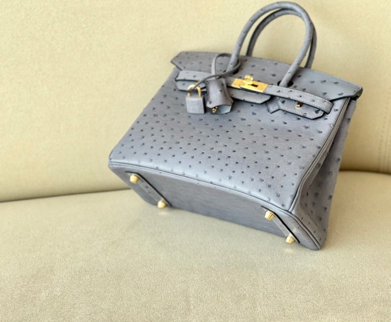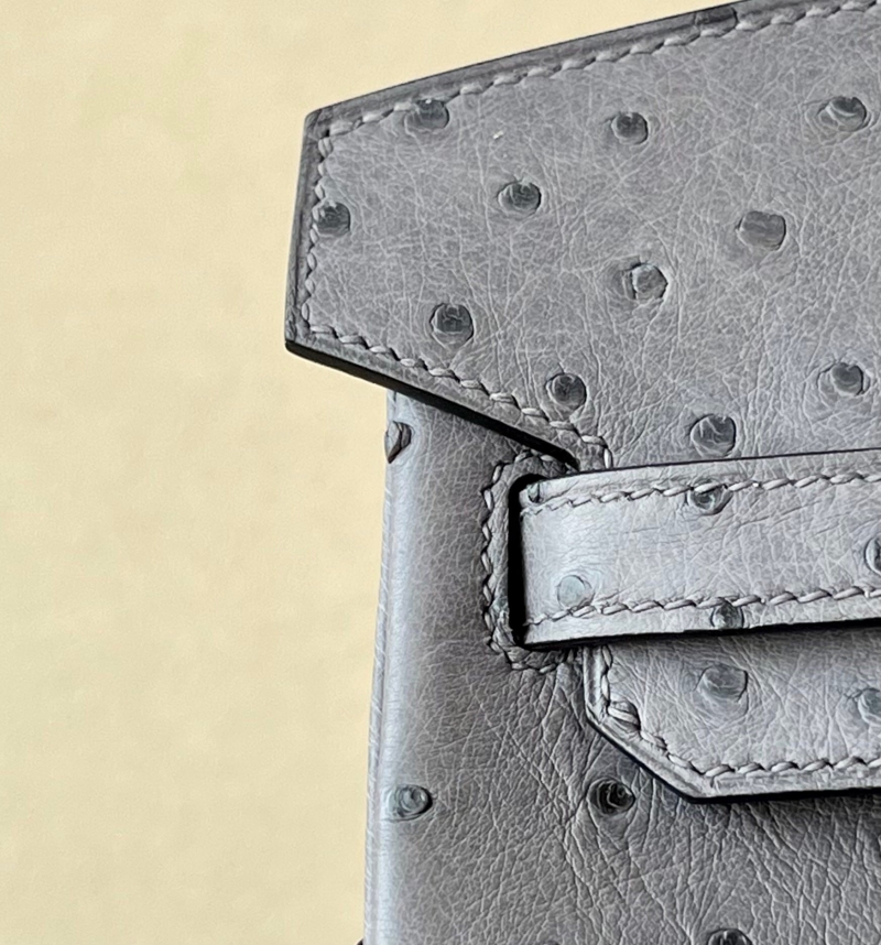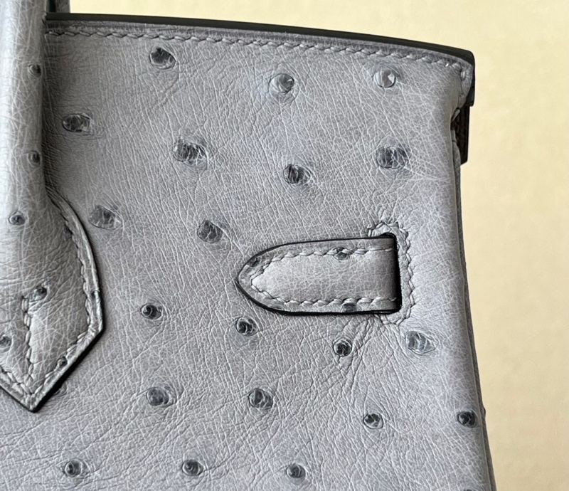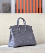 爱马仕Hermes Birkin25 爱马仕铂金包 纯手工定制版 鸵鸟皮 玛瑙灰