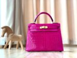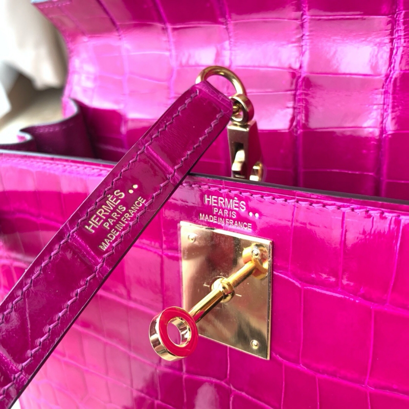 - 爱马仕Hermes Kelly系列 凯莉包25cm 鳄鱼皮 纯手工定制版 夜谭紫